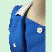 切り替え地に合わせたボタンや、Aラインにしたことで、他商品よりもウエスト周りをややゆったりとさせたデザインにしました。