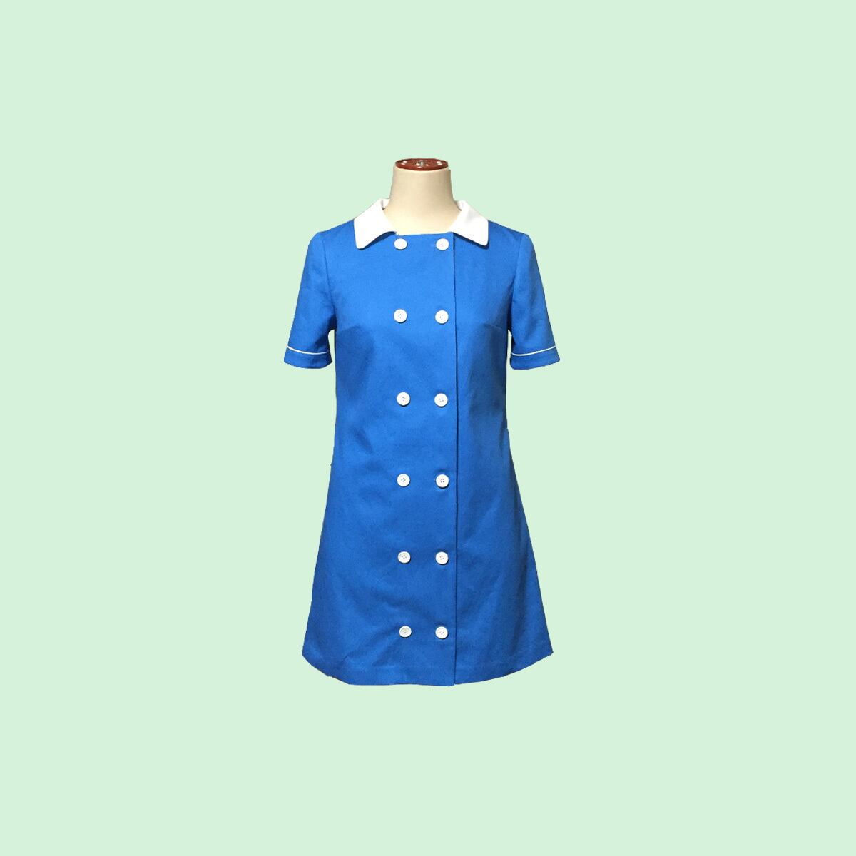 W開きハーフスリーブ、70sチックなデザインのソリッドカラーワンピースです。