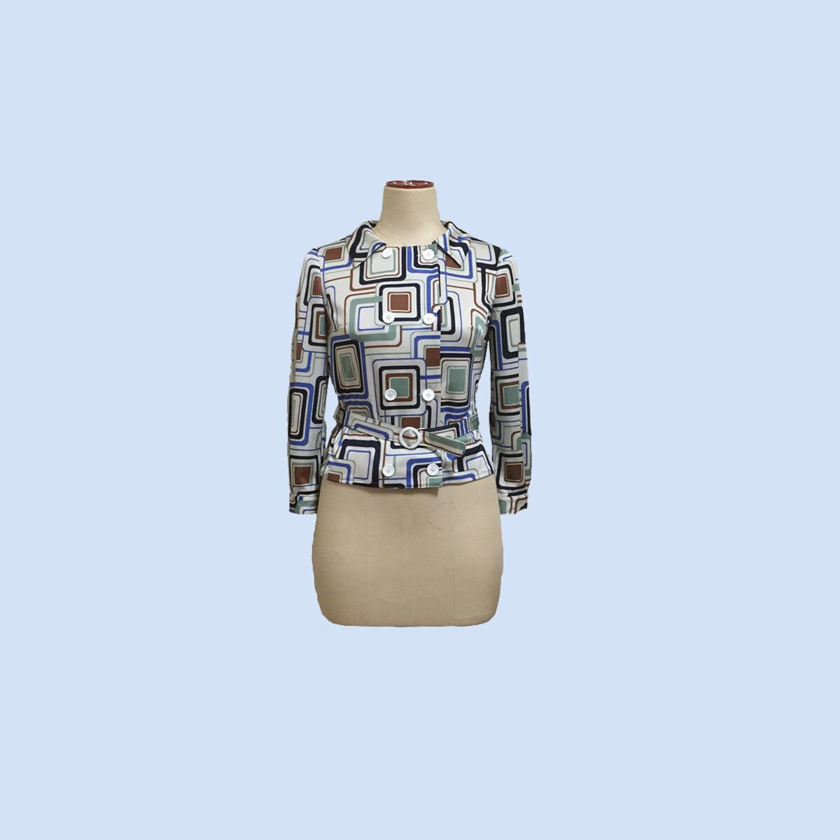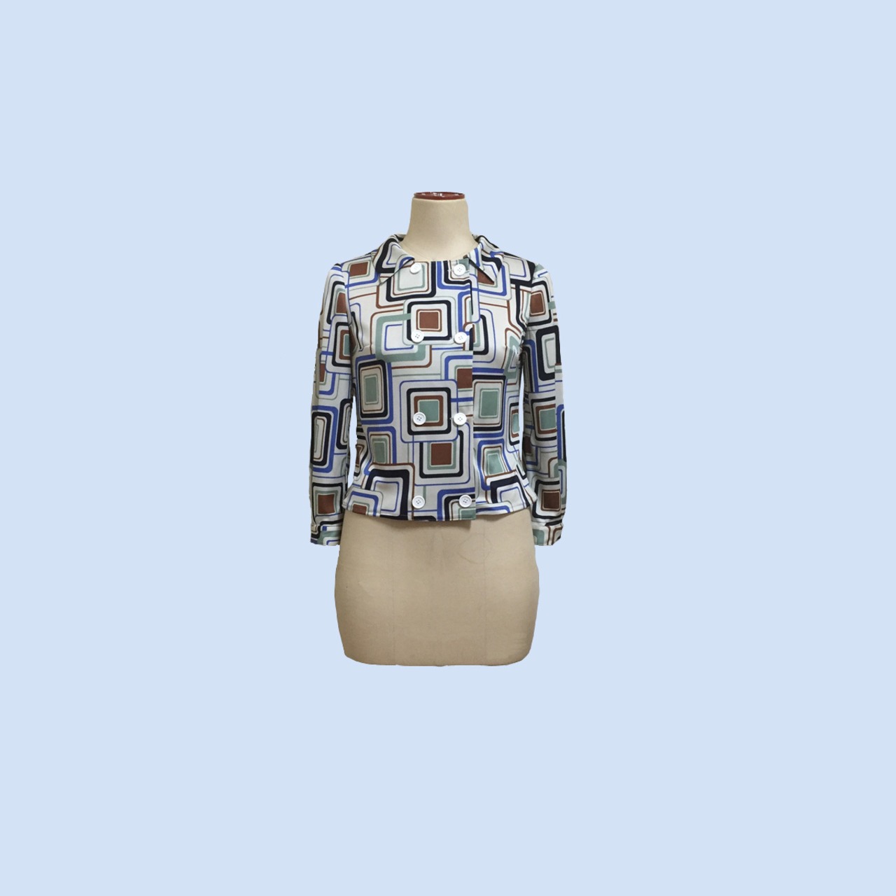 W開き8分袖、60sチックなデザインのレトロブラウスです。