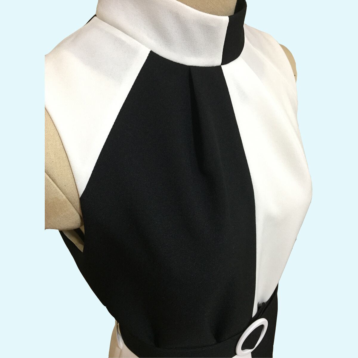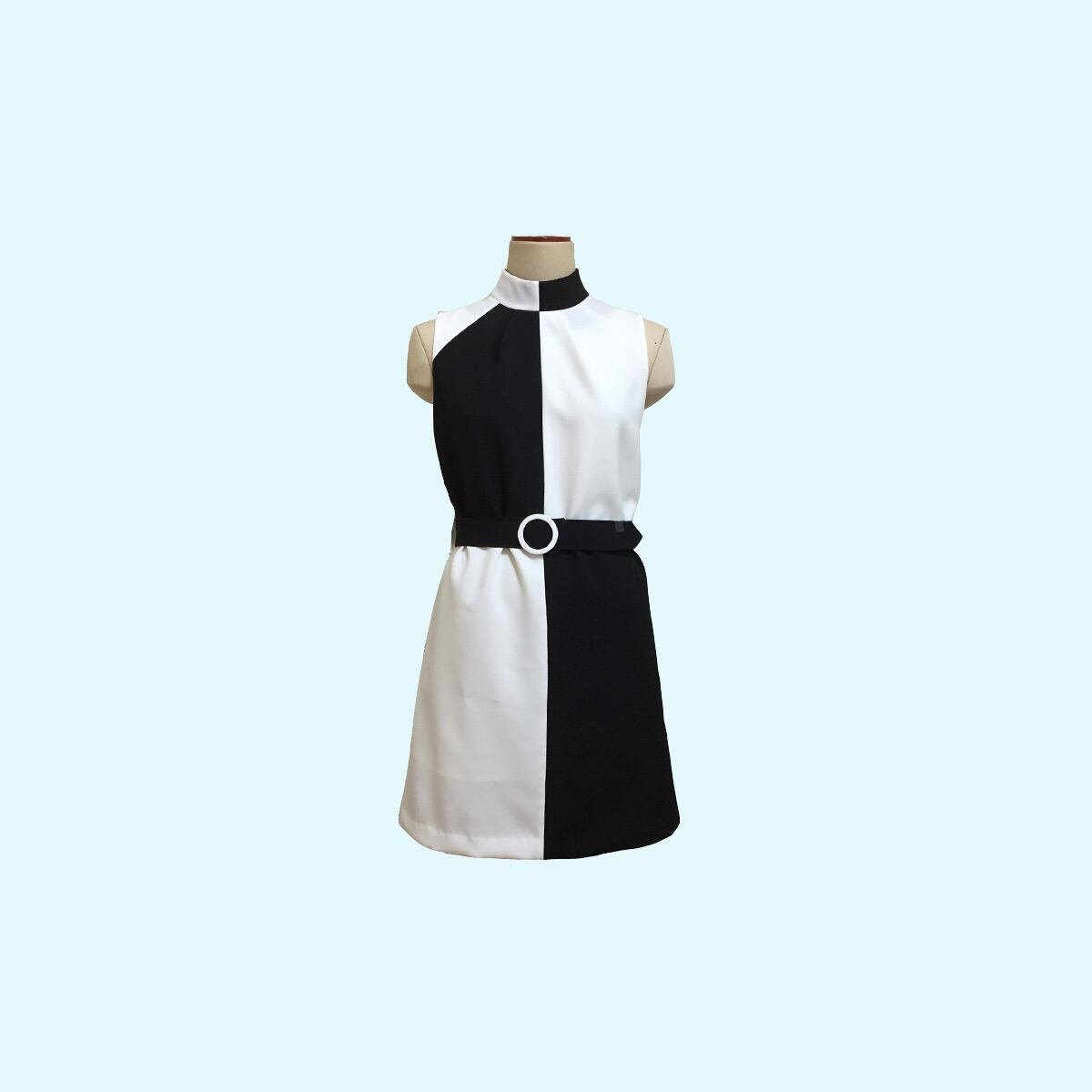 レトロなハイネックノースリーブワンピース。