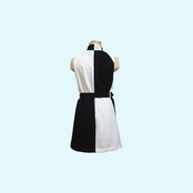 後ろ開きハイネック、アシンメトリー切り替えのワンピース。