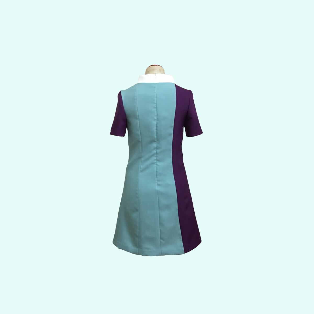 後ろ開きハーフスリーブ、60sチックなアシンメトリーデザインの袖付きワンピースです。