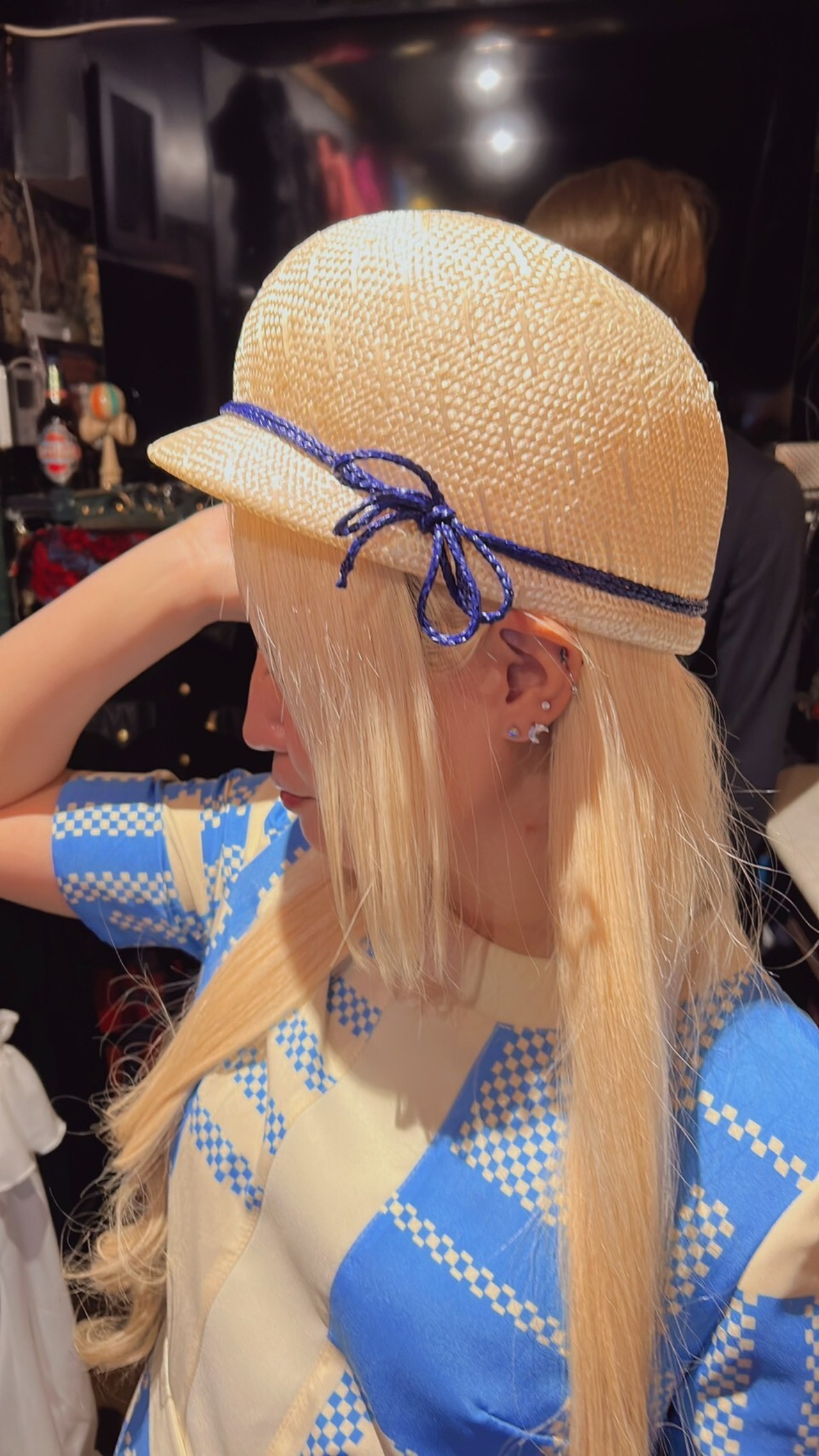 本体: 水色系柄 × クリーム