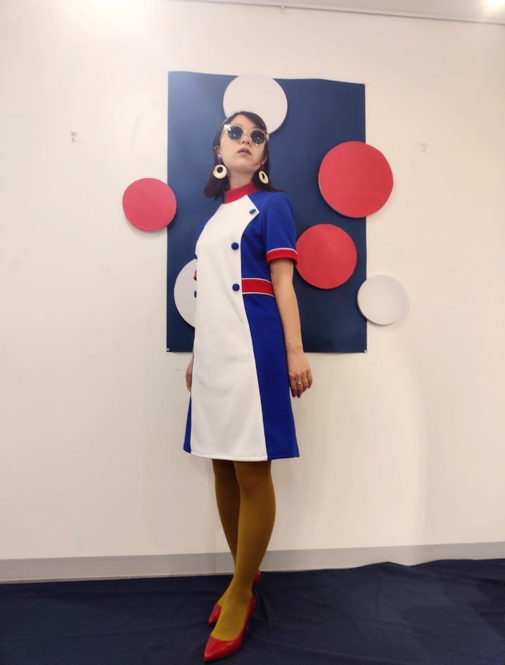 ポリエステルジャージーをメイン素材としたハーフスリーブワンピース