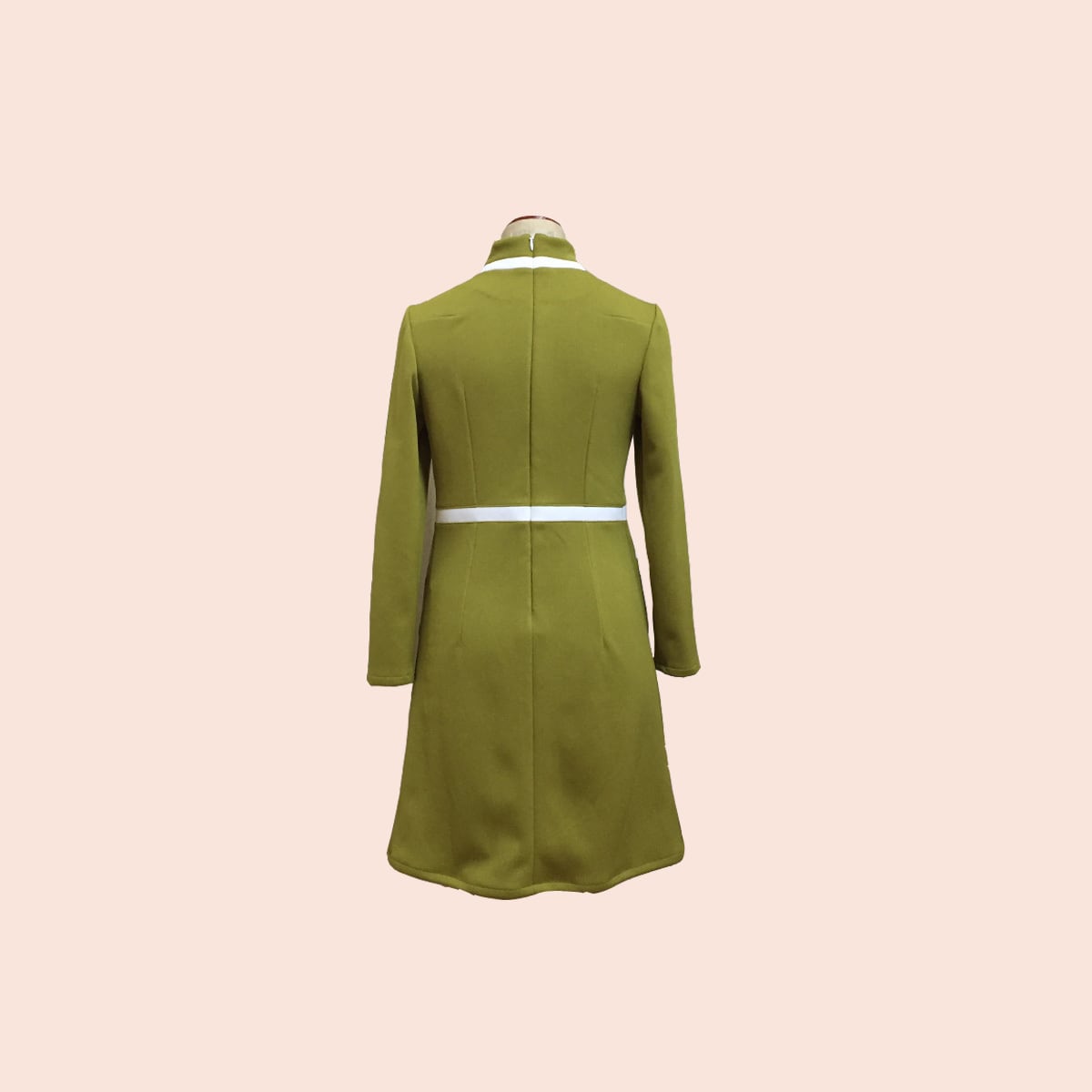 後ろ開きロングスリーブ、60sチックな切替デザインのワンピース。