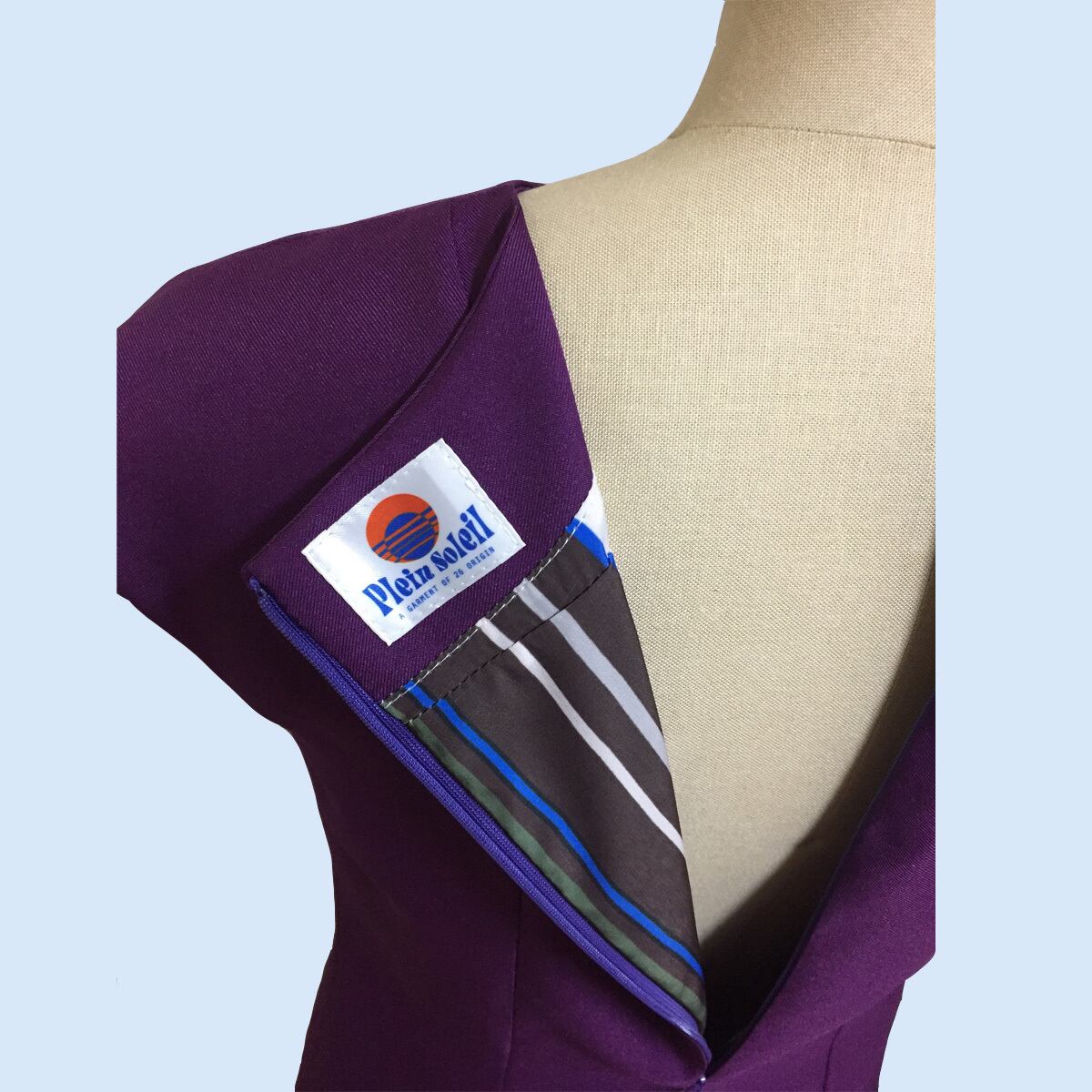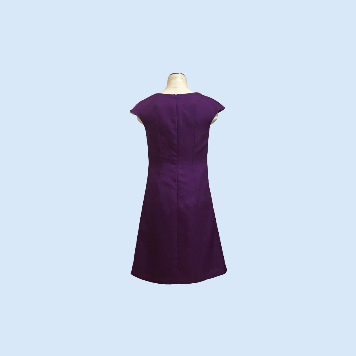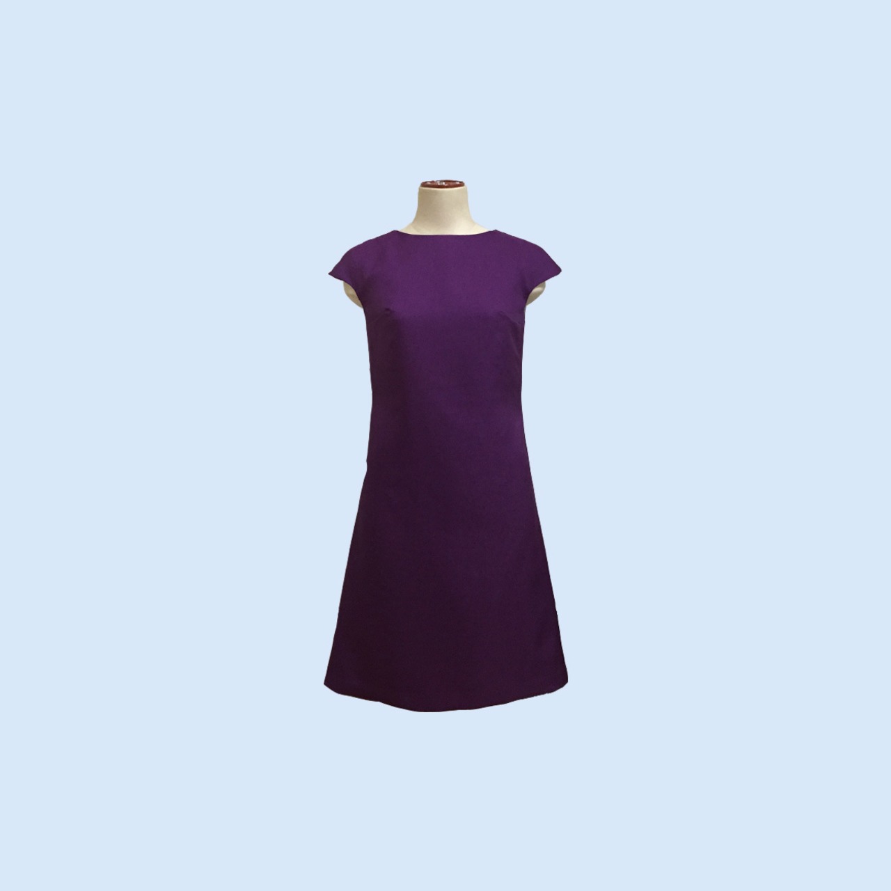 後ろ開きボートネック、フレンチスリーブのAラインワンピース。