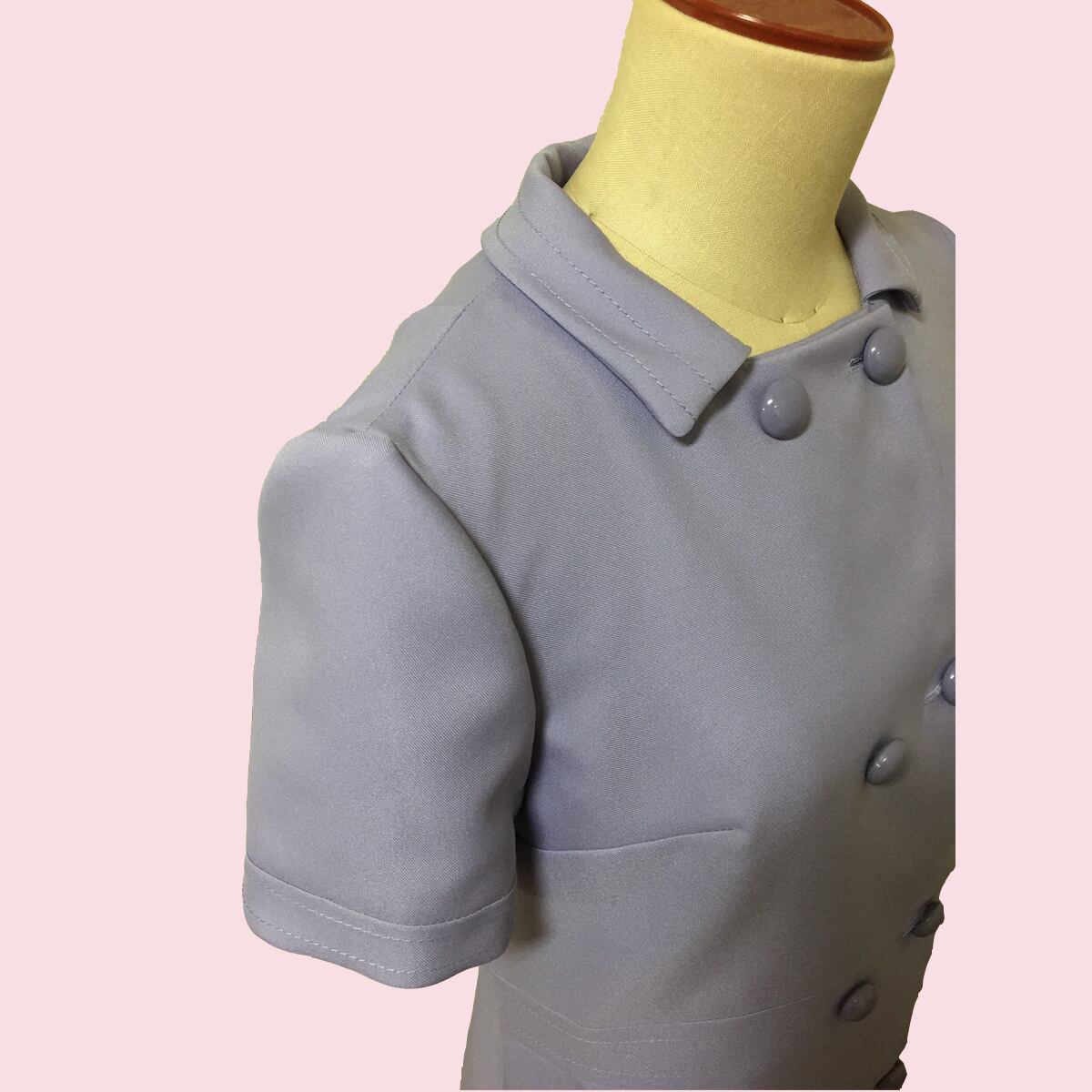 W開きハーフスリーブ、60sチックなデザインのソリッドカラーワンピースです。