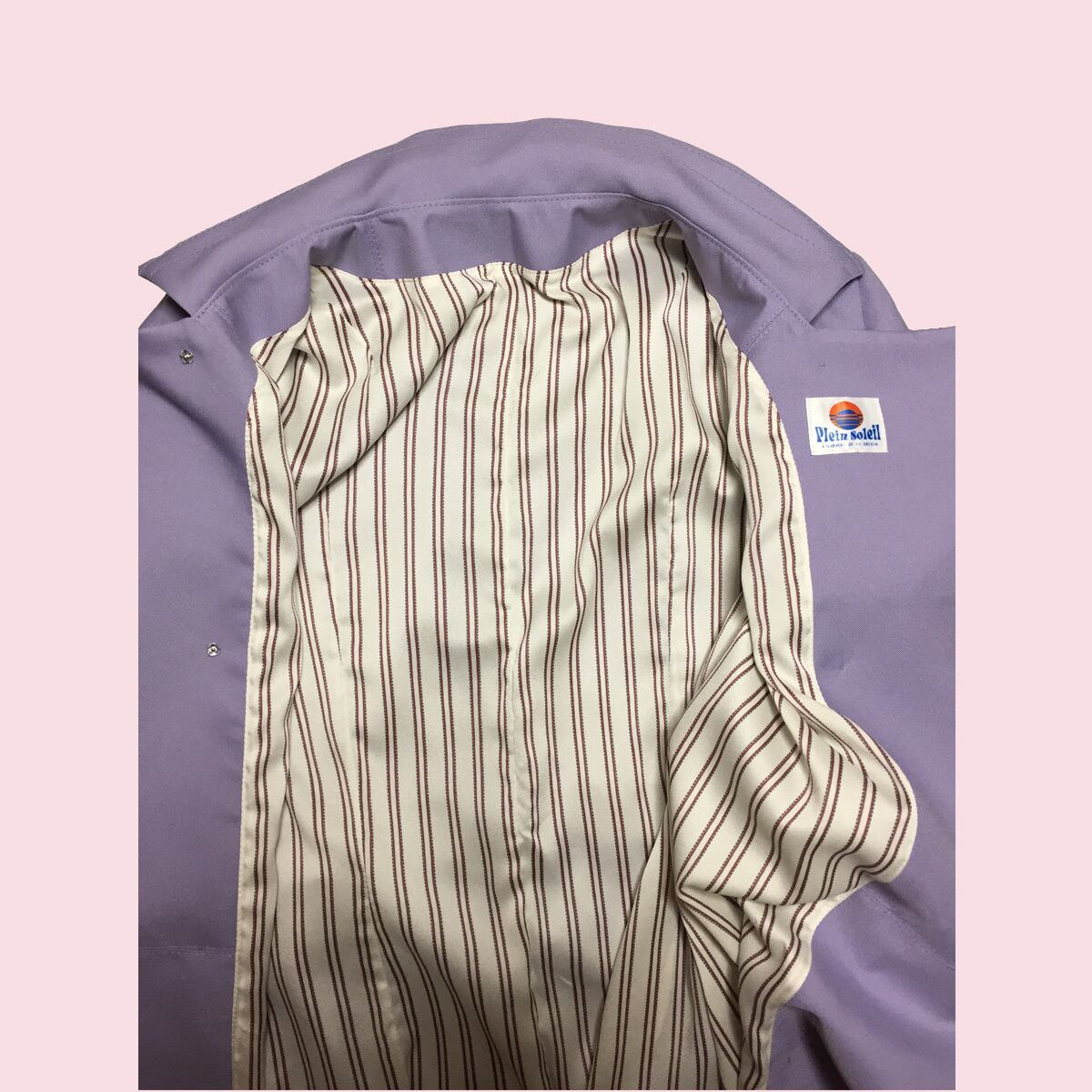 ラベンダーのメイン素材に飾りステッチ入りのベルト切り替えがアクセントとなっています。