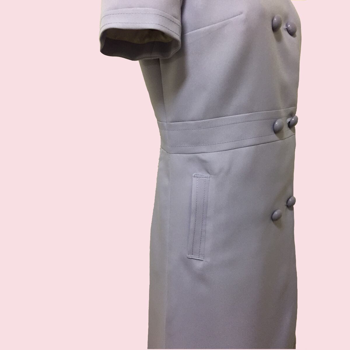 シンプル、レトロなハーフスリーブWブレストワンピース。
