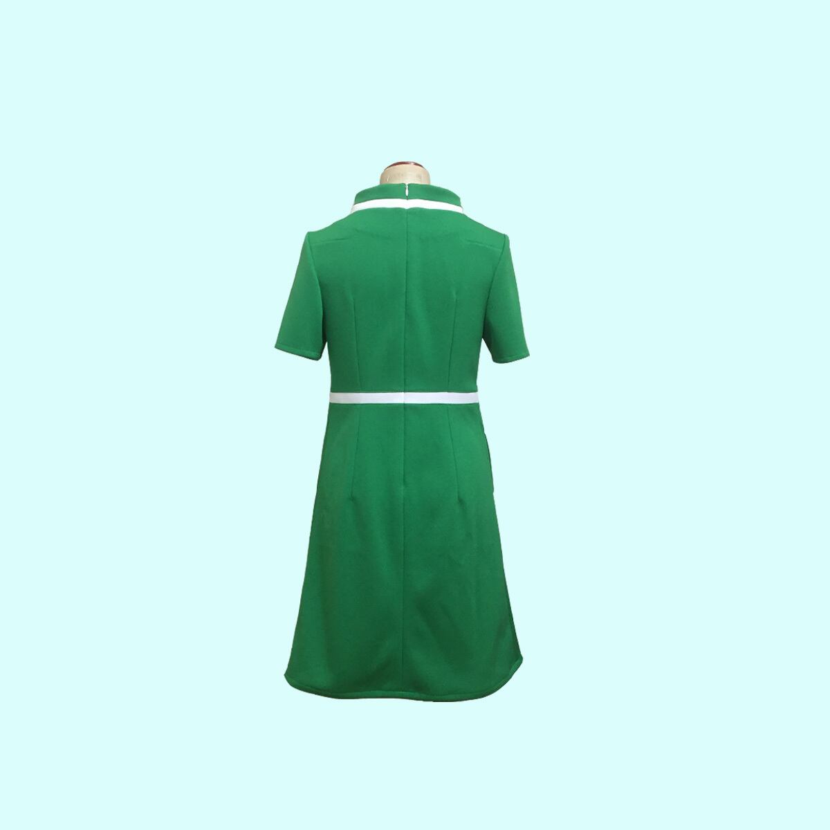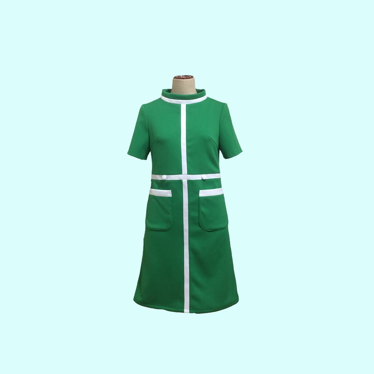 レトロなハーフスリーブハイネックワンピース。