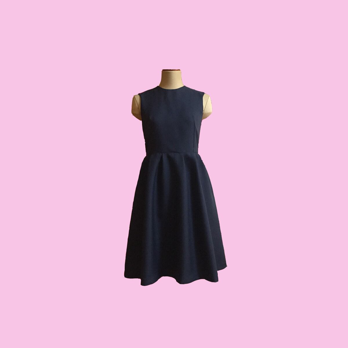シンプルなトップスにややボリュームを持たせたフレアタックスカートがアクセントとなっています。