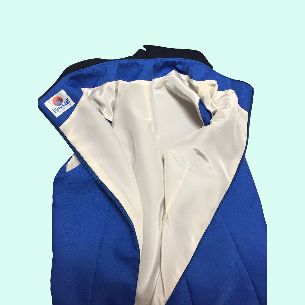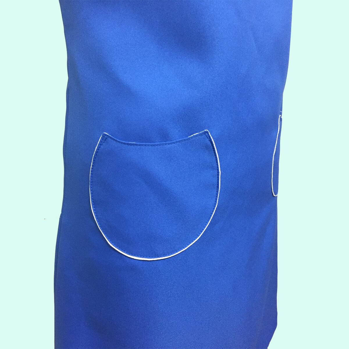 ブルーのメイン素材にネイビーのオックスフォード地で切り替えがアクセントとなっています。