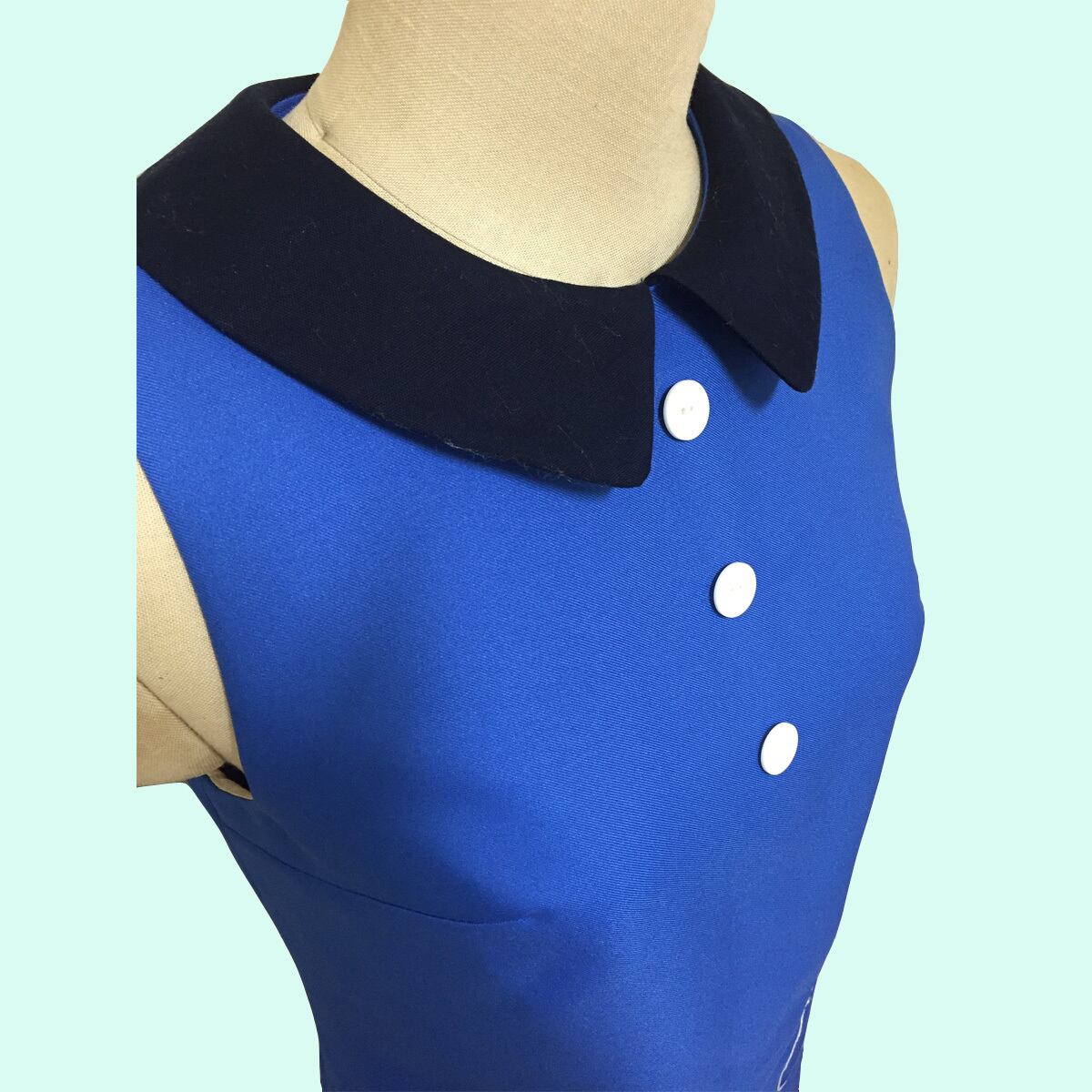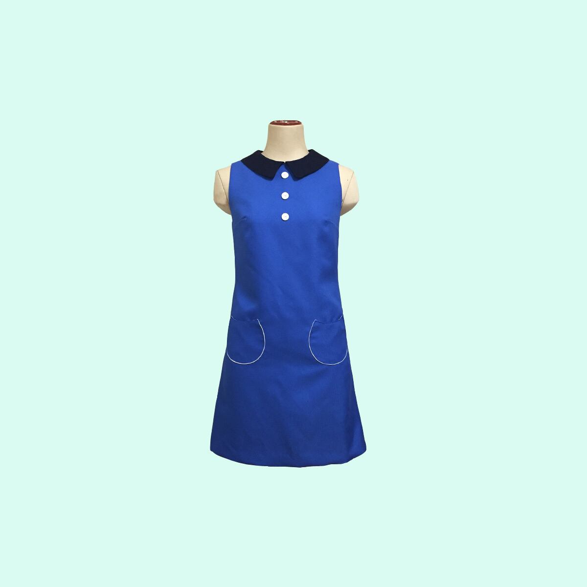 フラットカラーノースリーブが60sチックなデザインのソリッドカラーワンピースです。