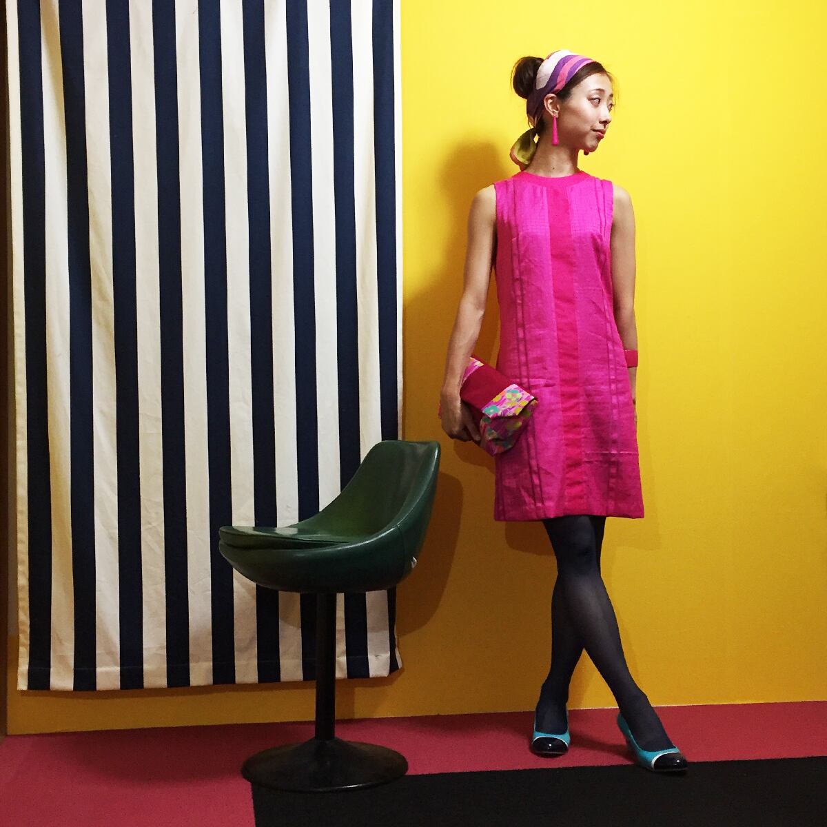レトロなノースリーブワンピース。