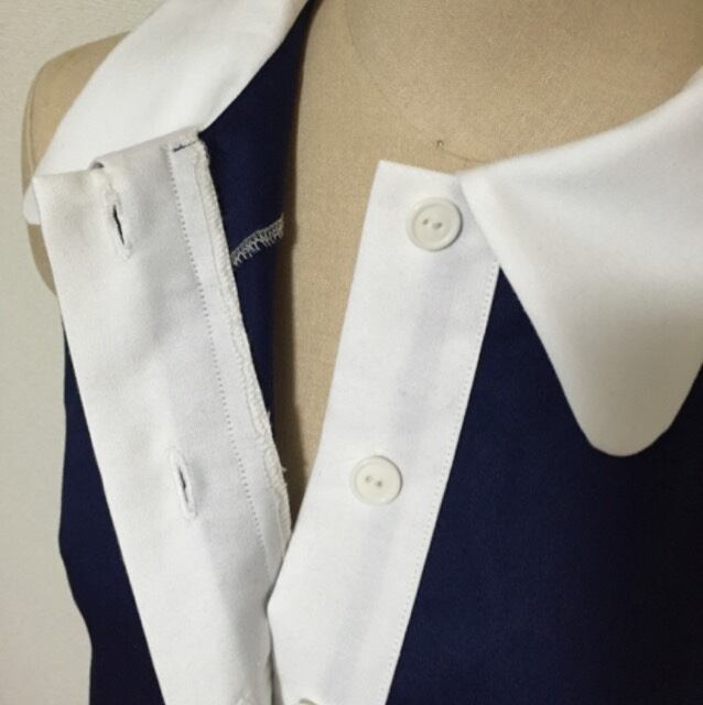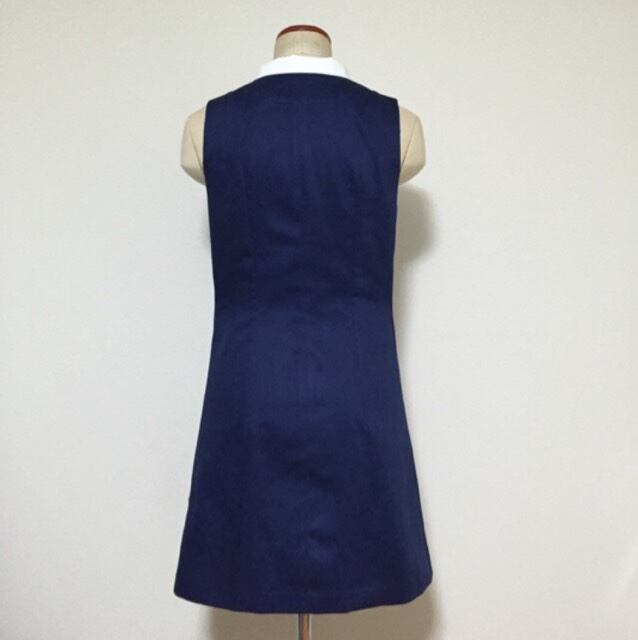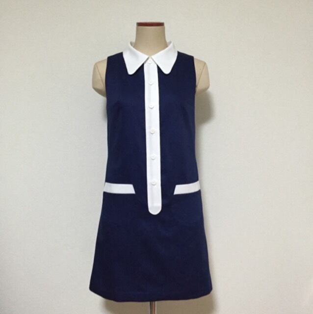 大きめの衿とノースリーブが70sチックなデザインのワンピースです。
