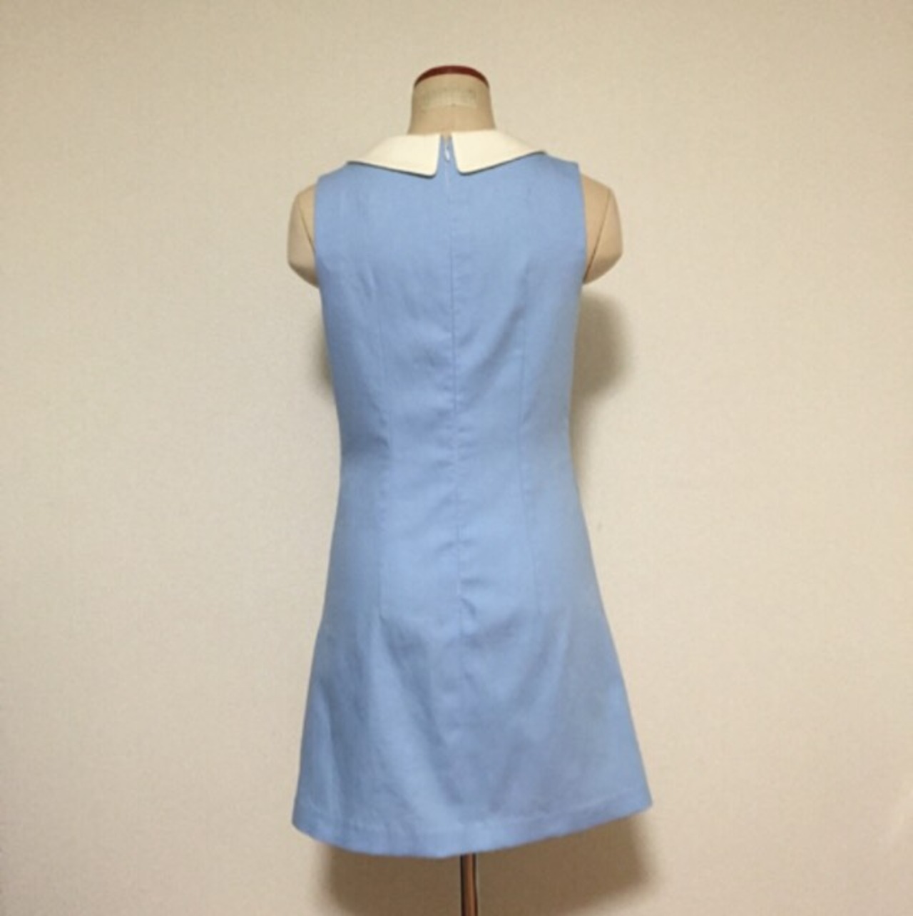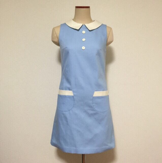 フラットカラーノースリーブが70sチックなデザインのソリッドカラーワンピースです。