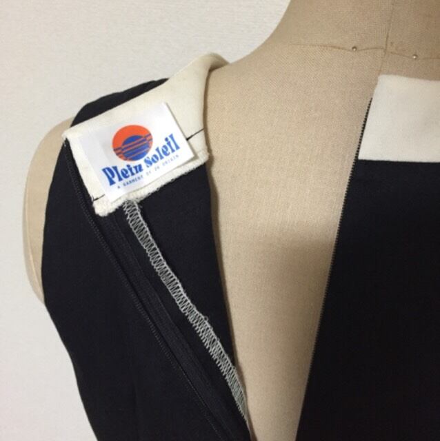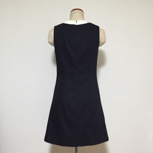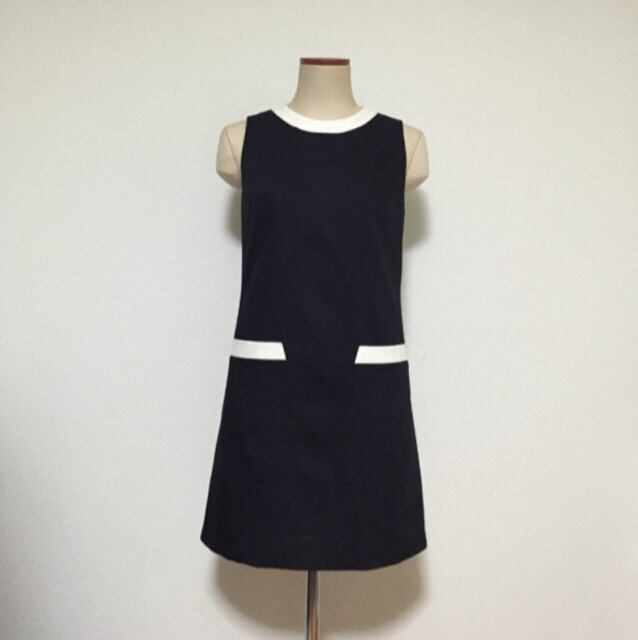 ノーカラーノースリーブが60sチックなデザインのソリッドカラーワンピースです。