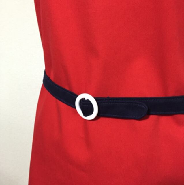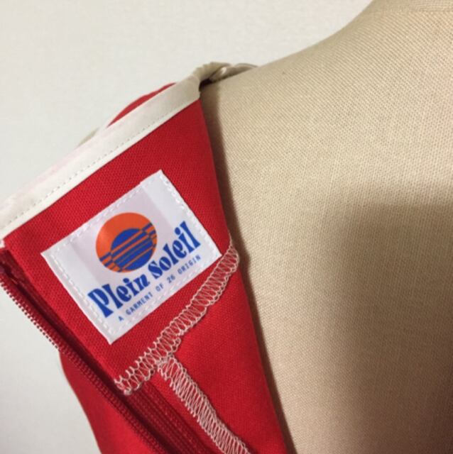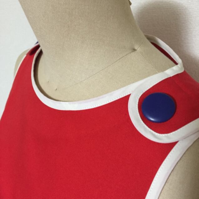 レッドのメイン素材にホワイトのパイピングがアクセントとなっています。