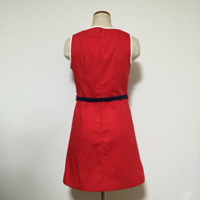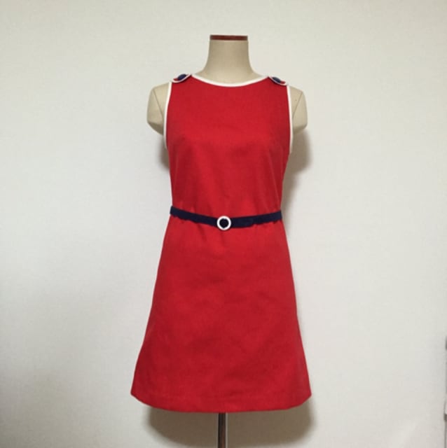 ノーカラーノースリーブが60sチックなデザインのソリッドカラーワンピースです。