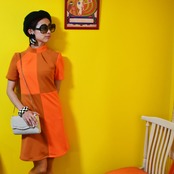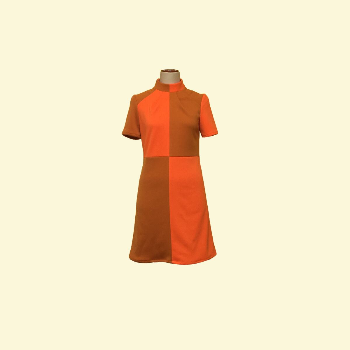 レトロなハイネックハーフスリーブワンピース。