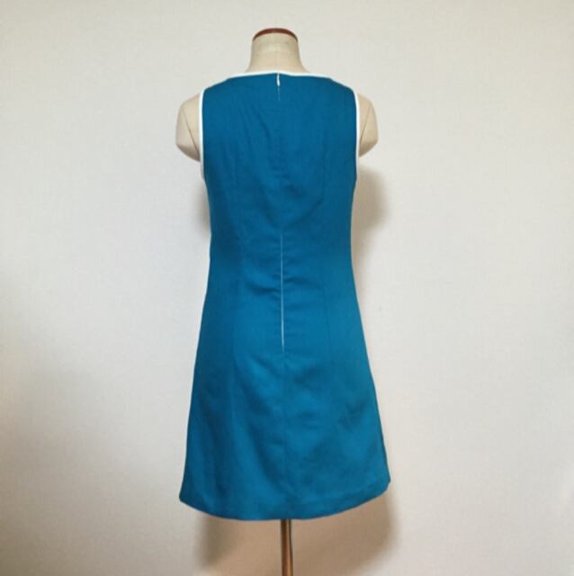 ノーカラーノースリーブが70sチックなデザインのソリッドカラーワンピースです。