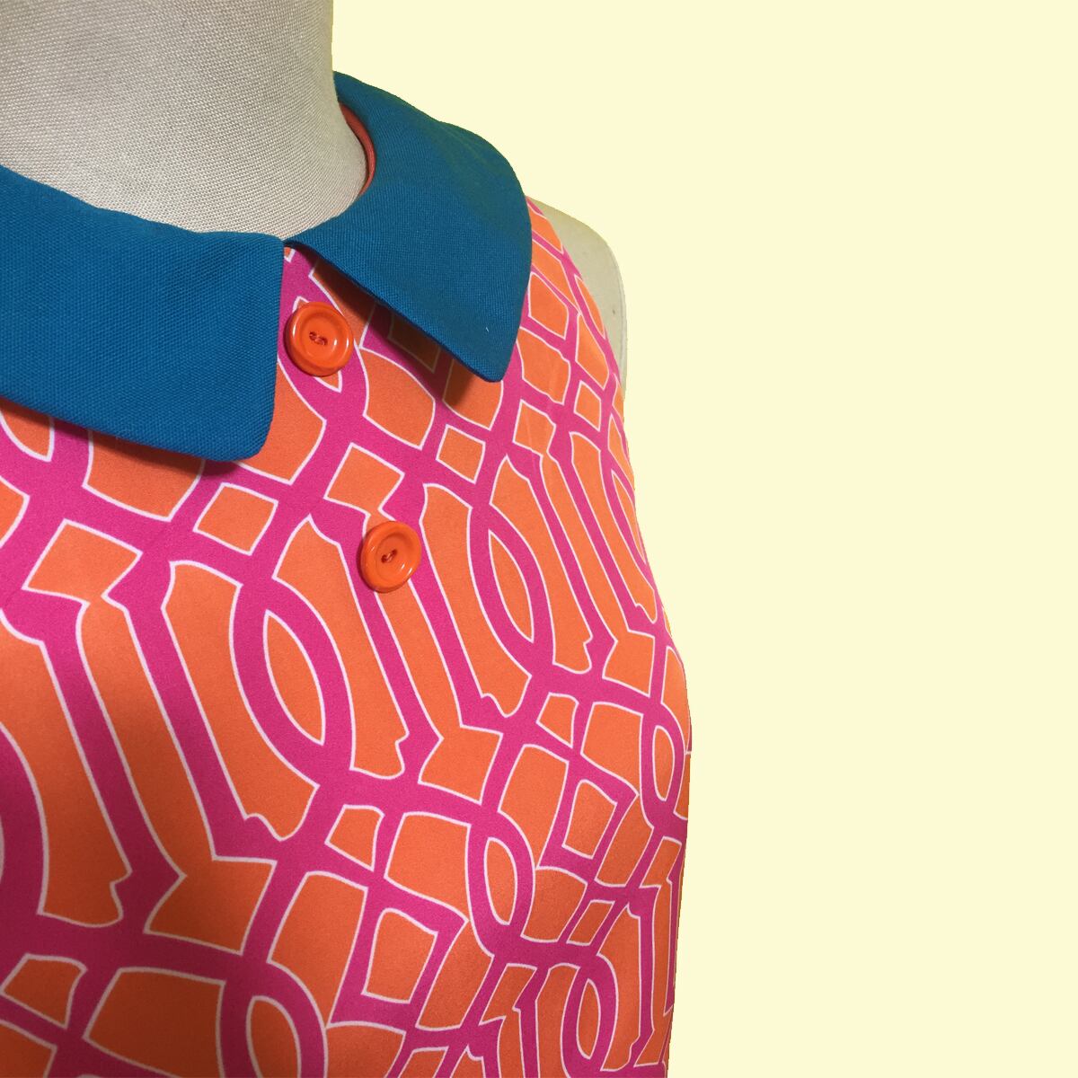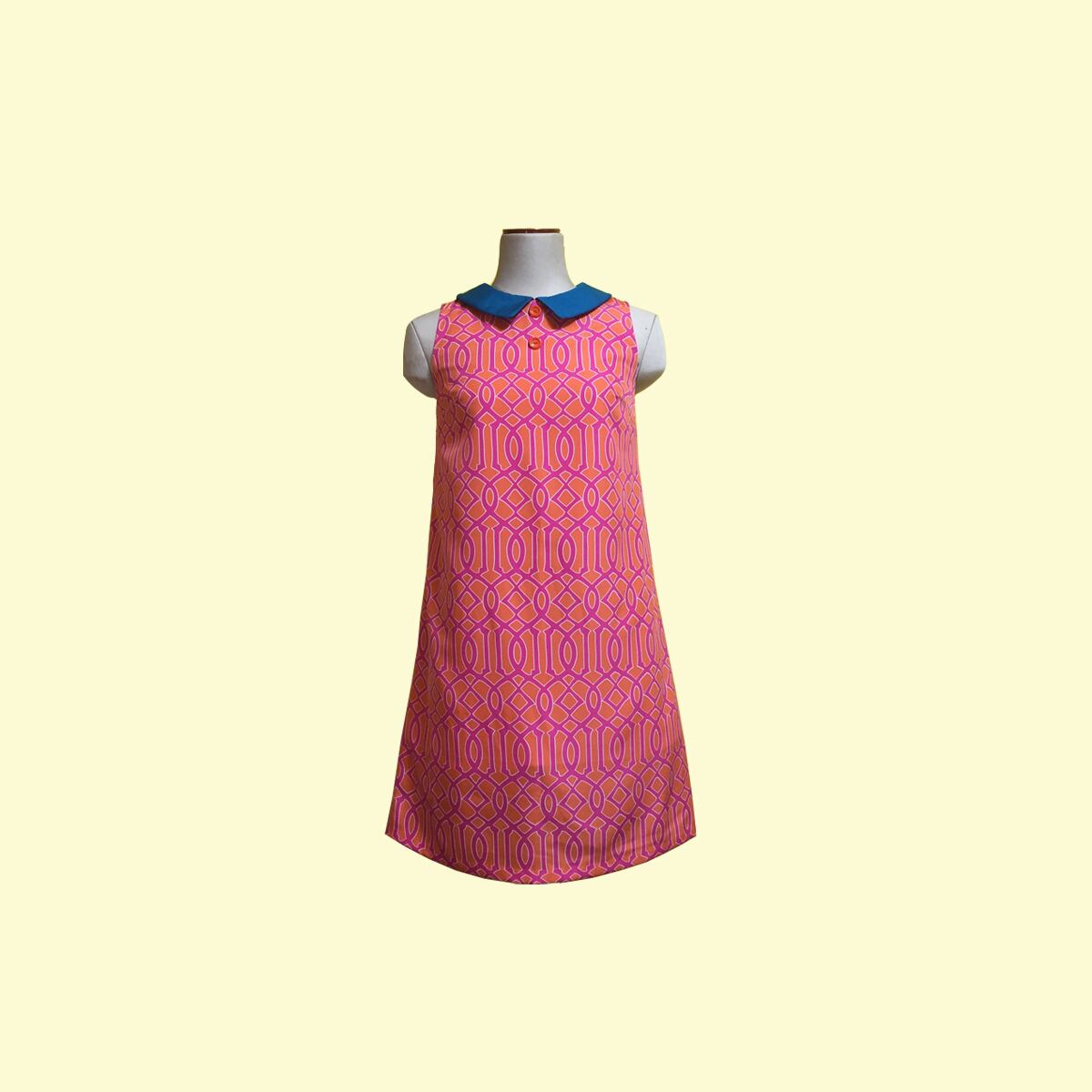 海外仕入れの幾何学柄生地を使用した、レトロワンピース。