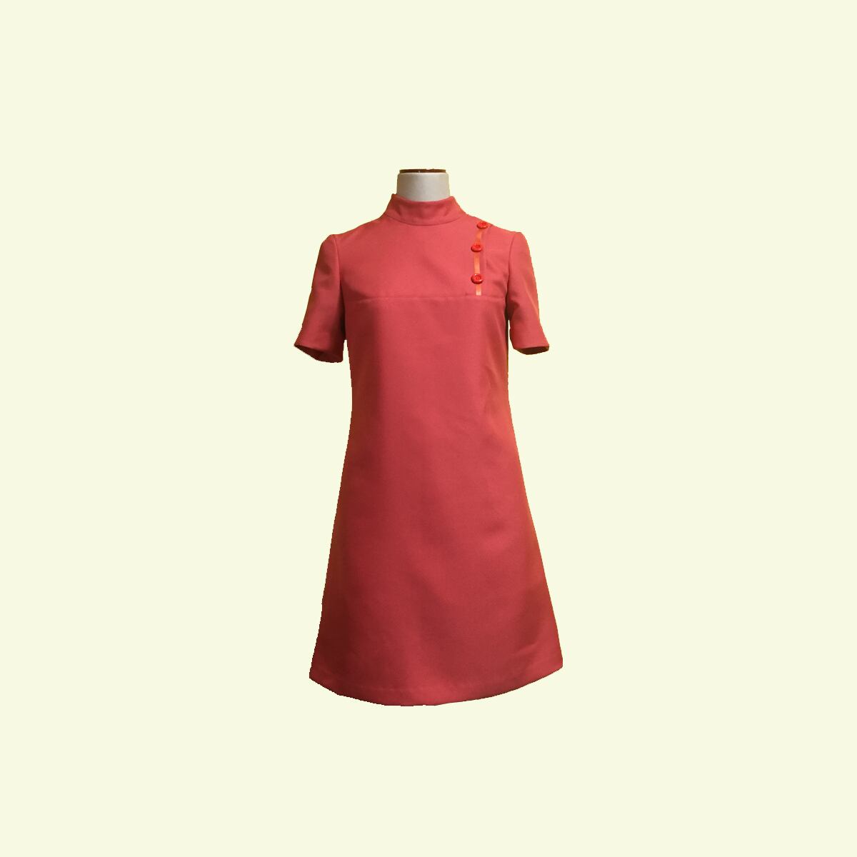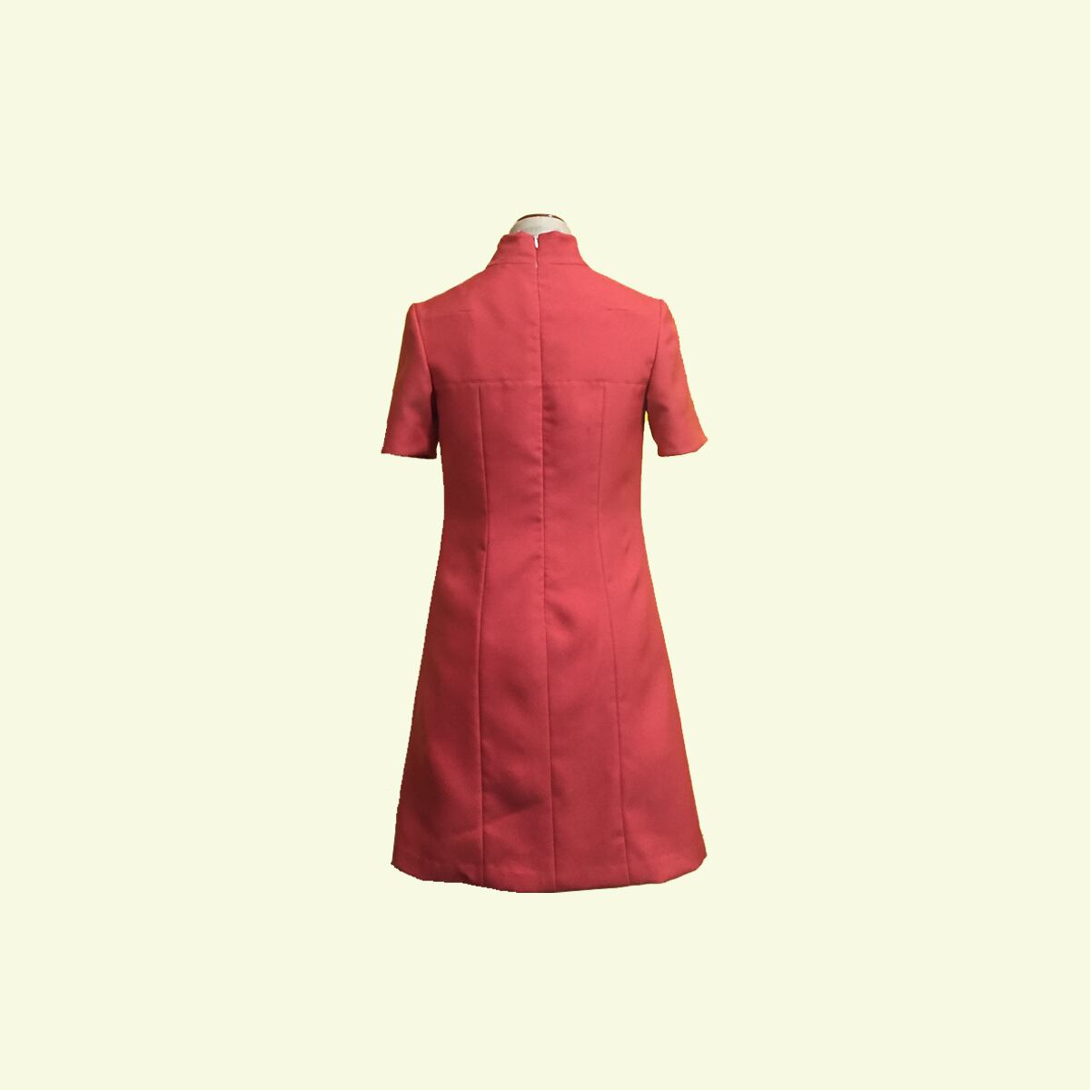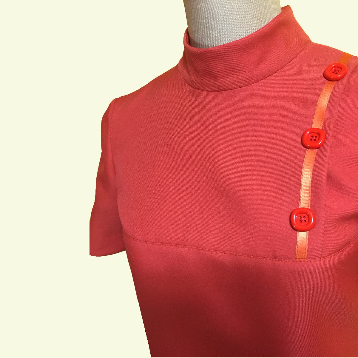 フロント開き見せの飾りボタンと異素材リボンがデザインポイント。