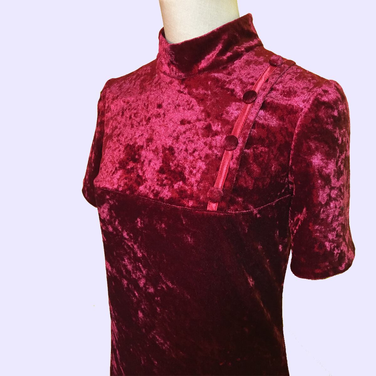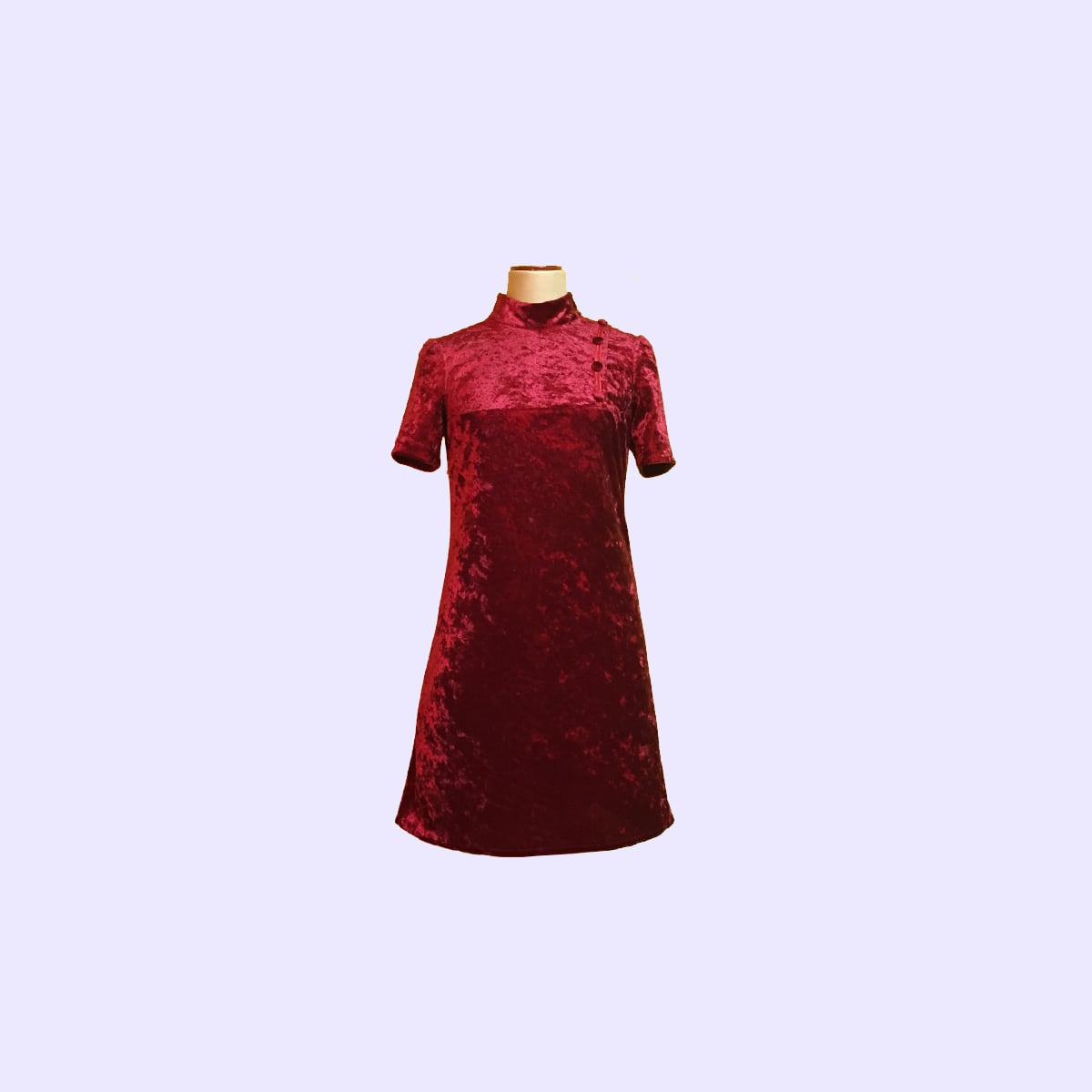 レトロなハイネックハーフスリーブワンピース。