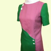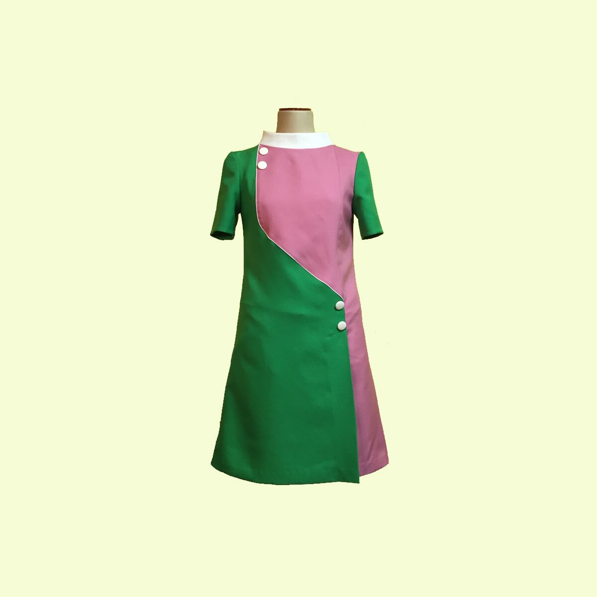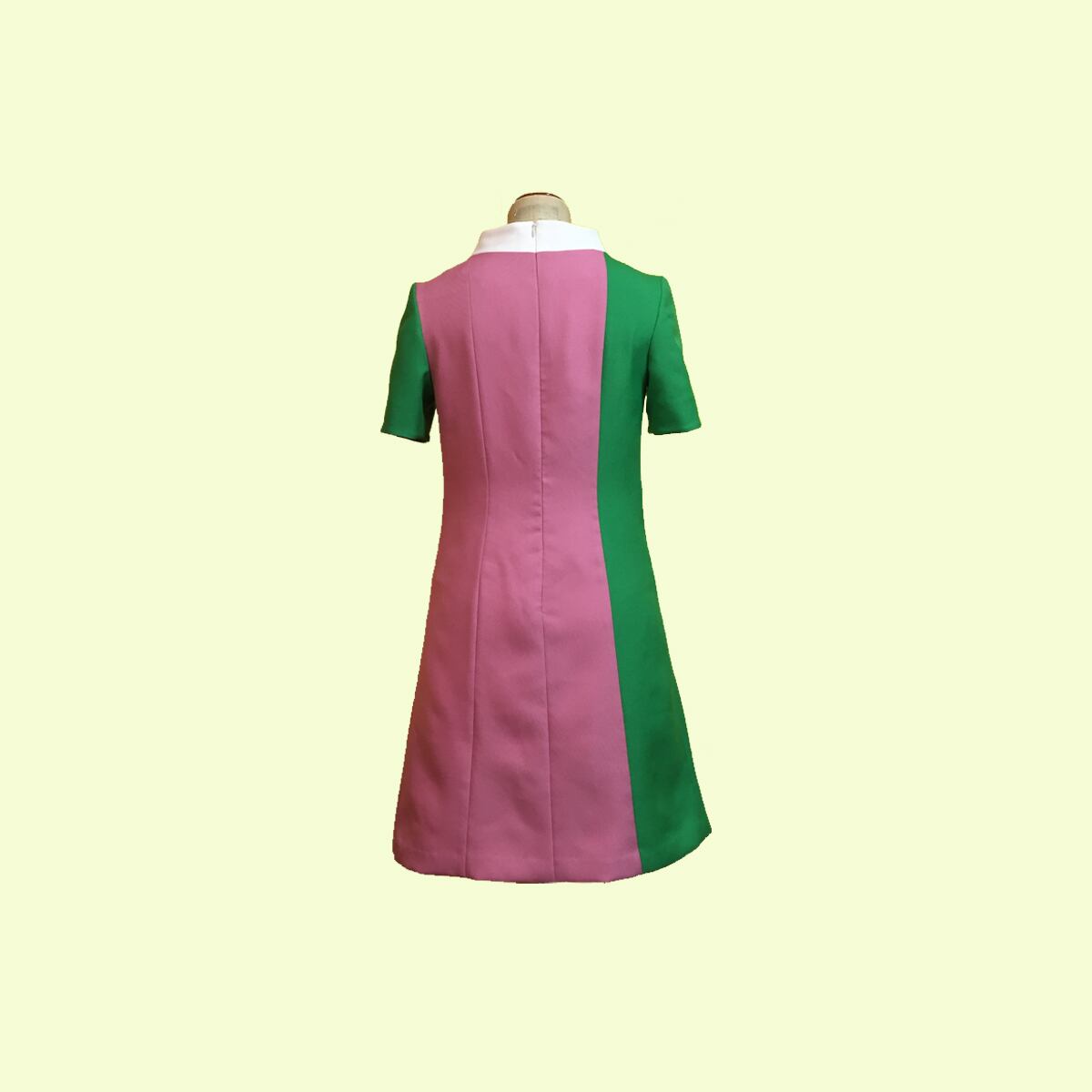 後ろ開きハーフスリーブ、60sチックなアシンメトリーデザインの袖付きワンピースです。