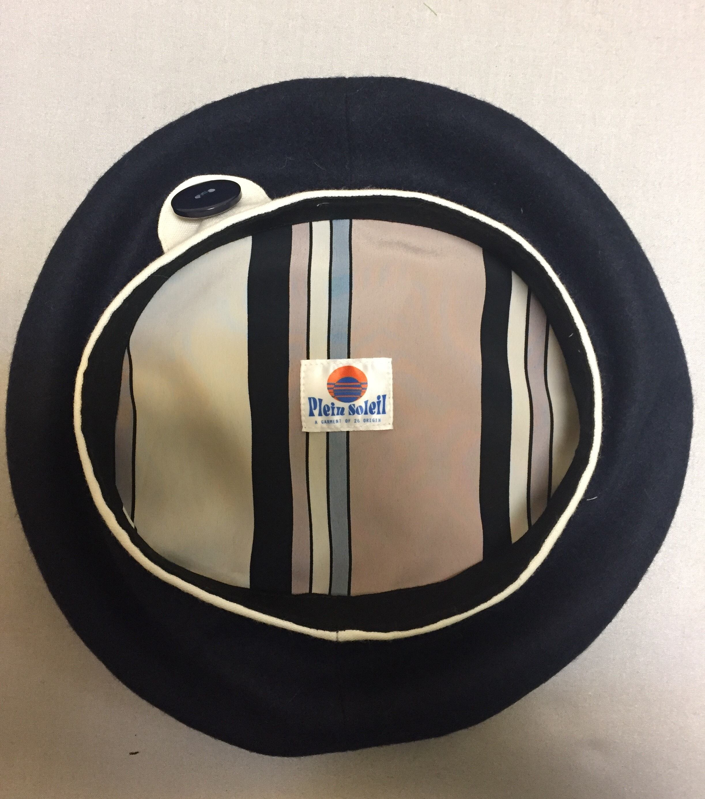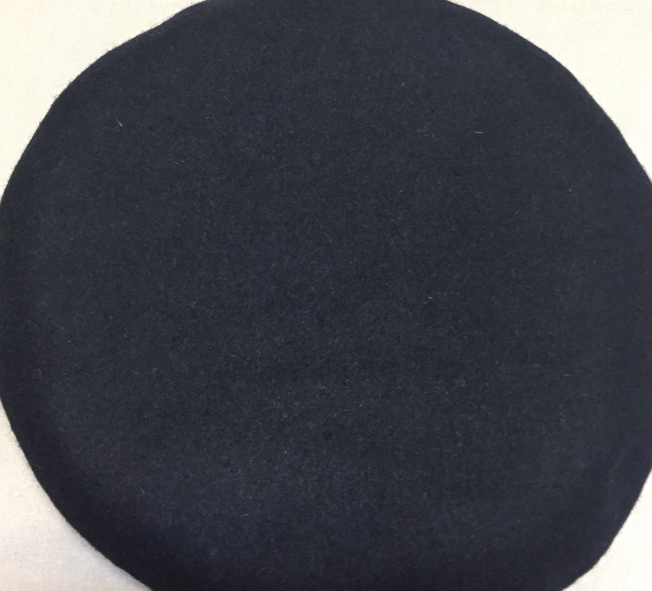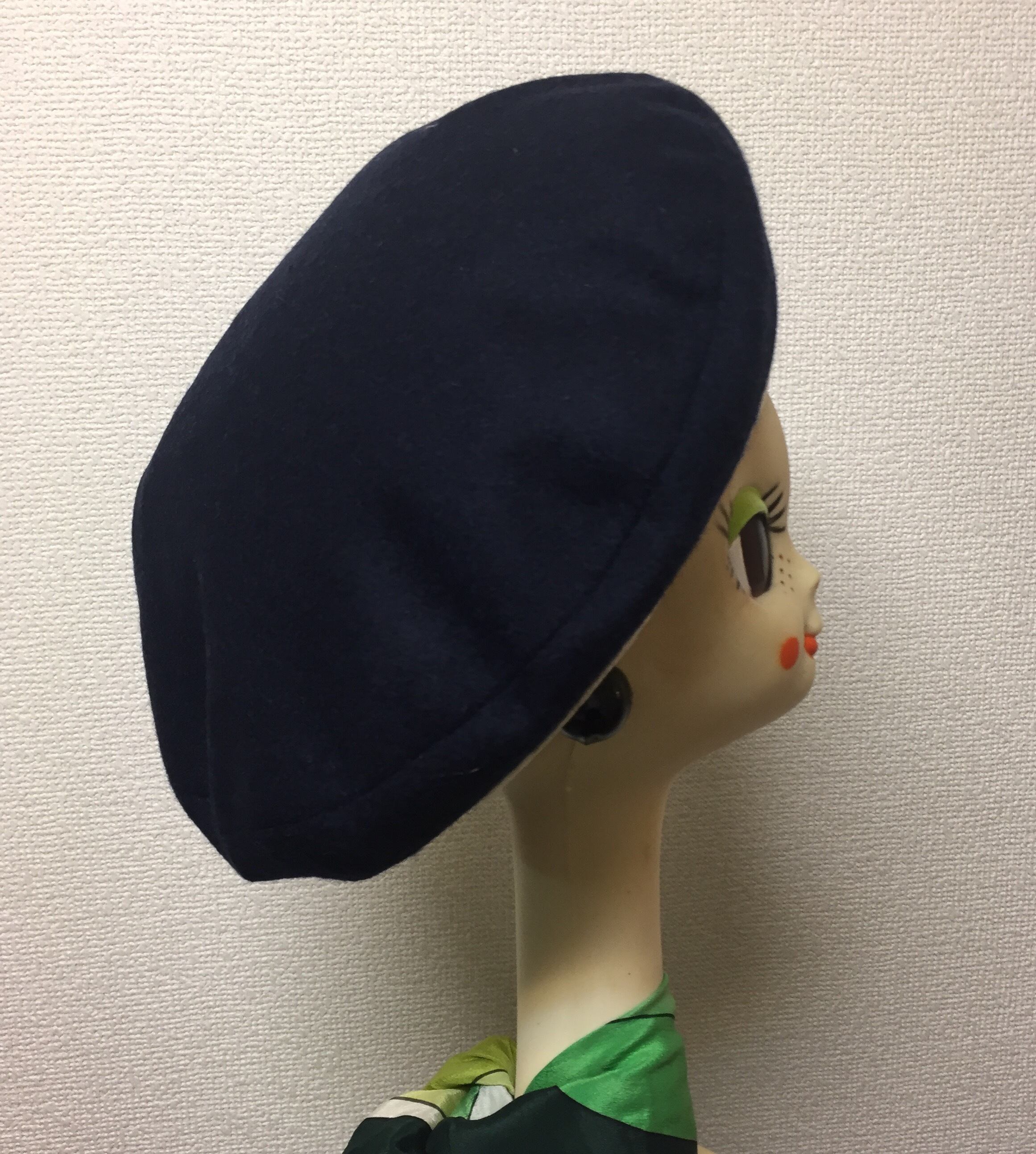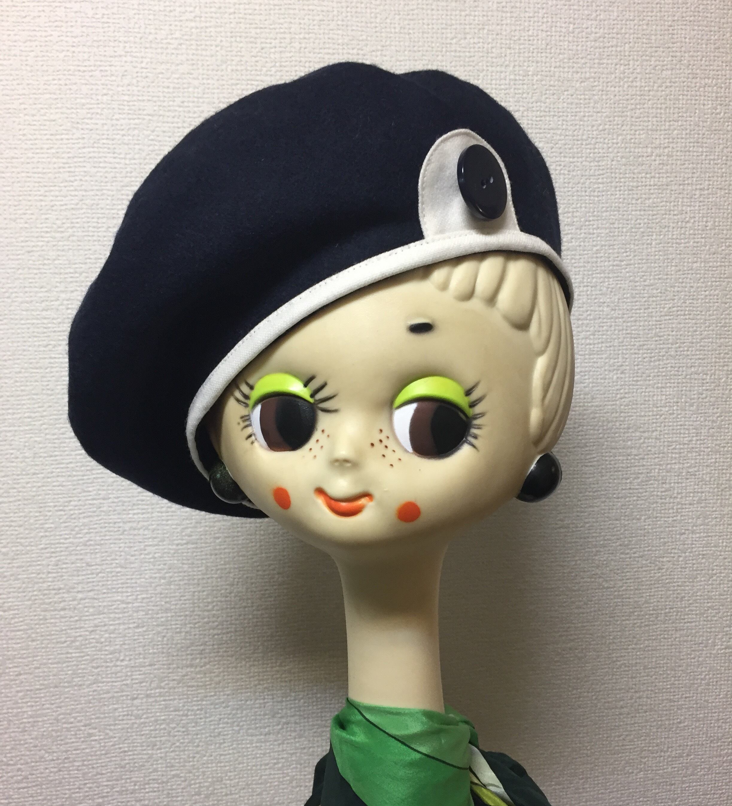 形はシンプルながら厚地ウールの素材感、飾りボタンが、ポイントとなっています。