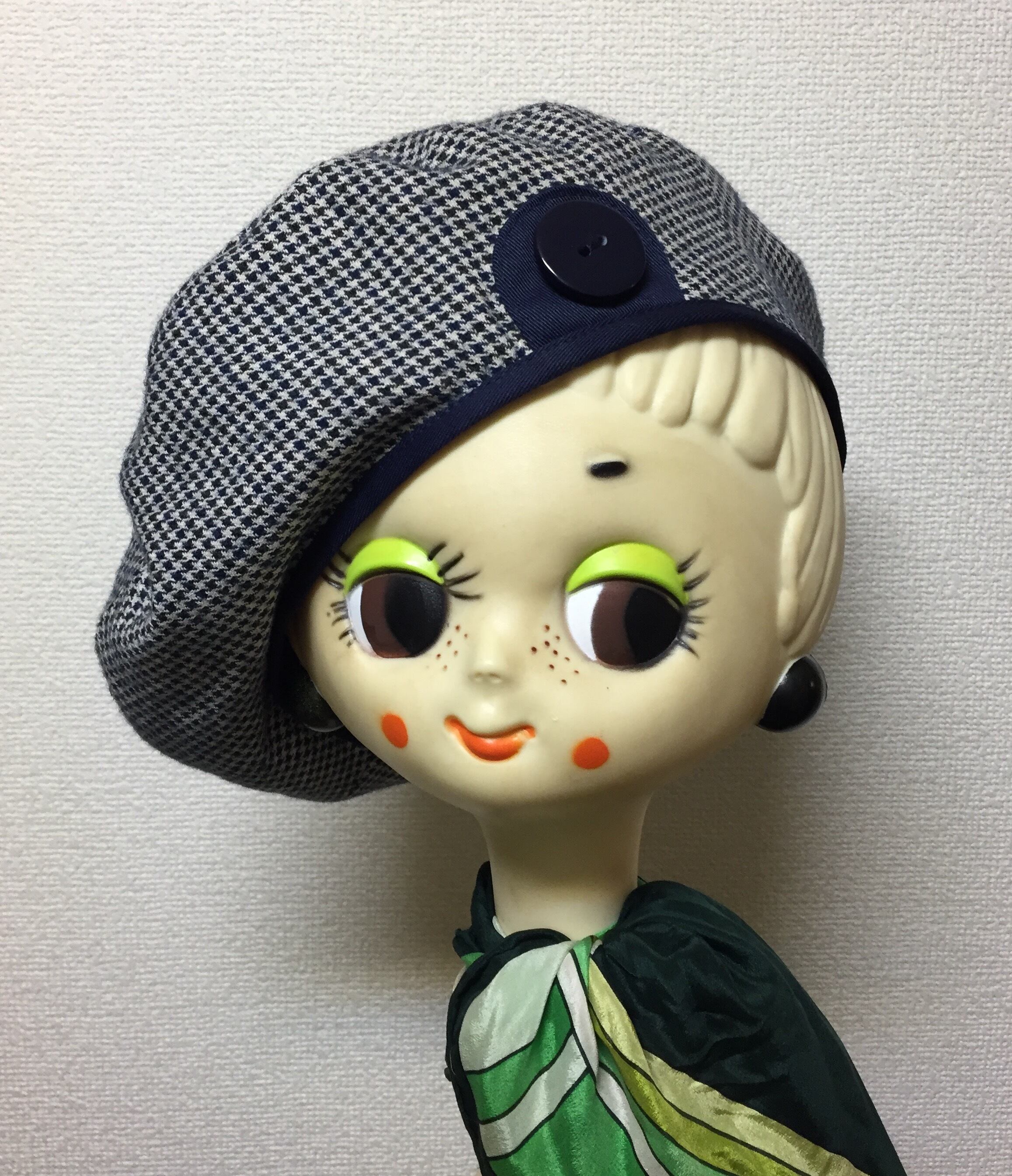 形はシンプルながら千鳥格子柄、飾りボタンが、ポイントとなっています。