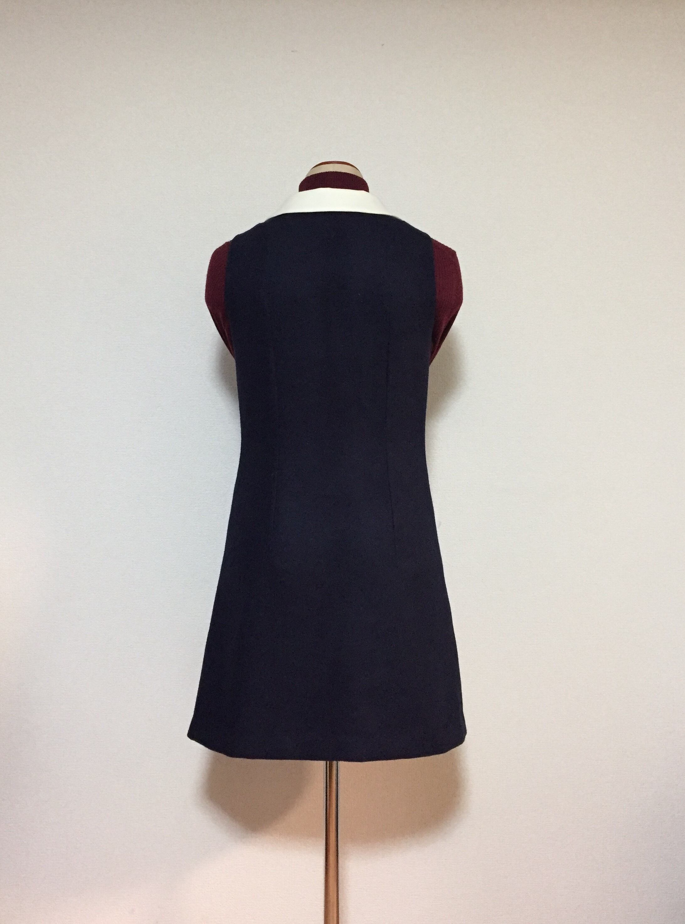 W開きノースリーブ、70sチックなデザインのソリッドカラーワンピースです。