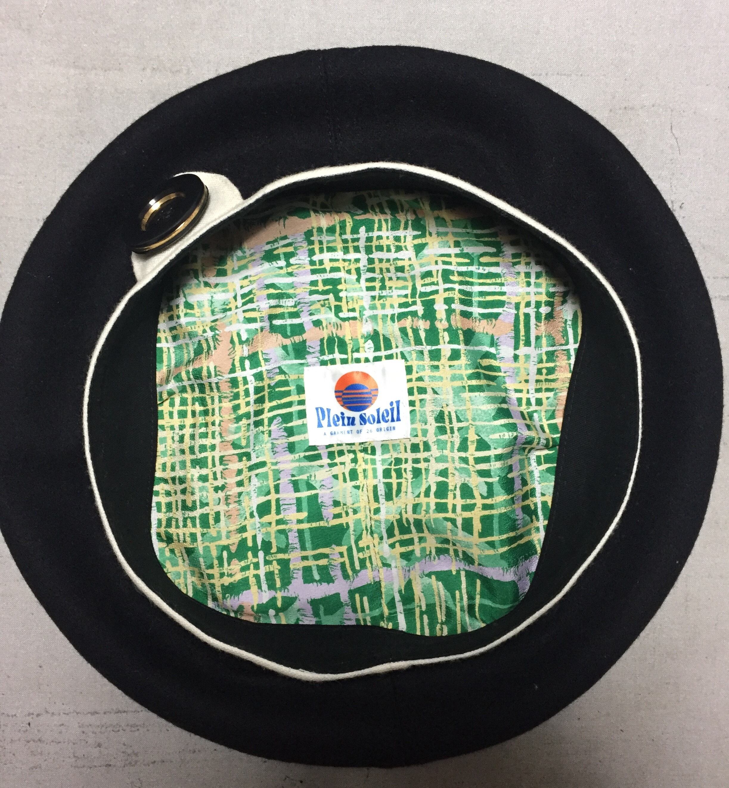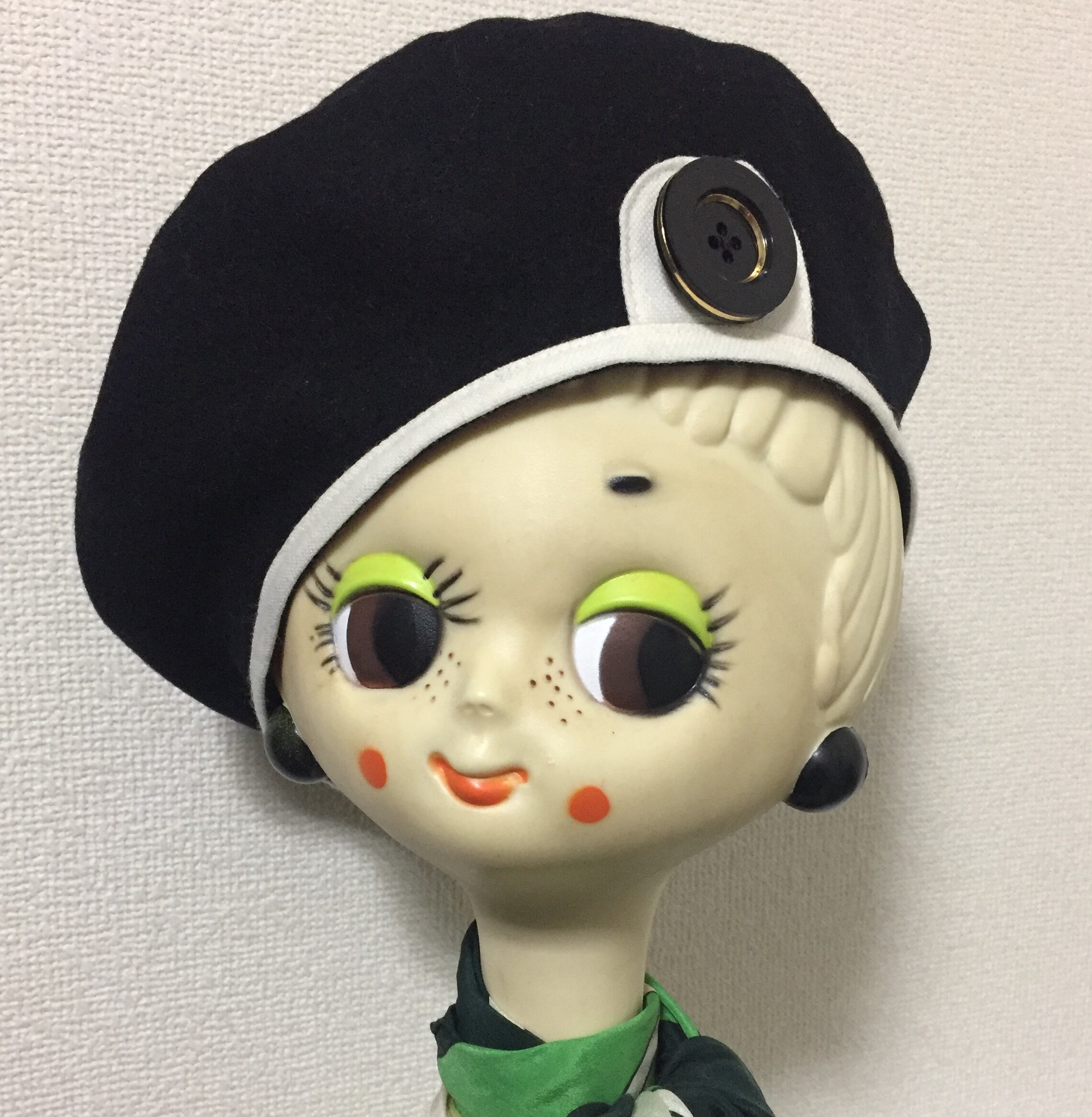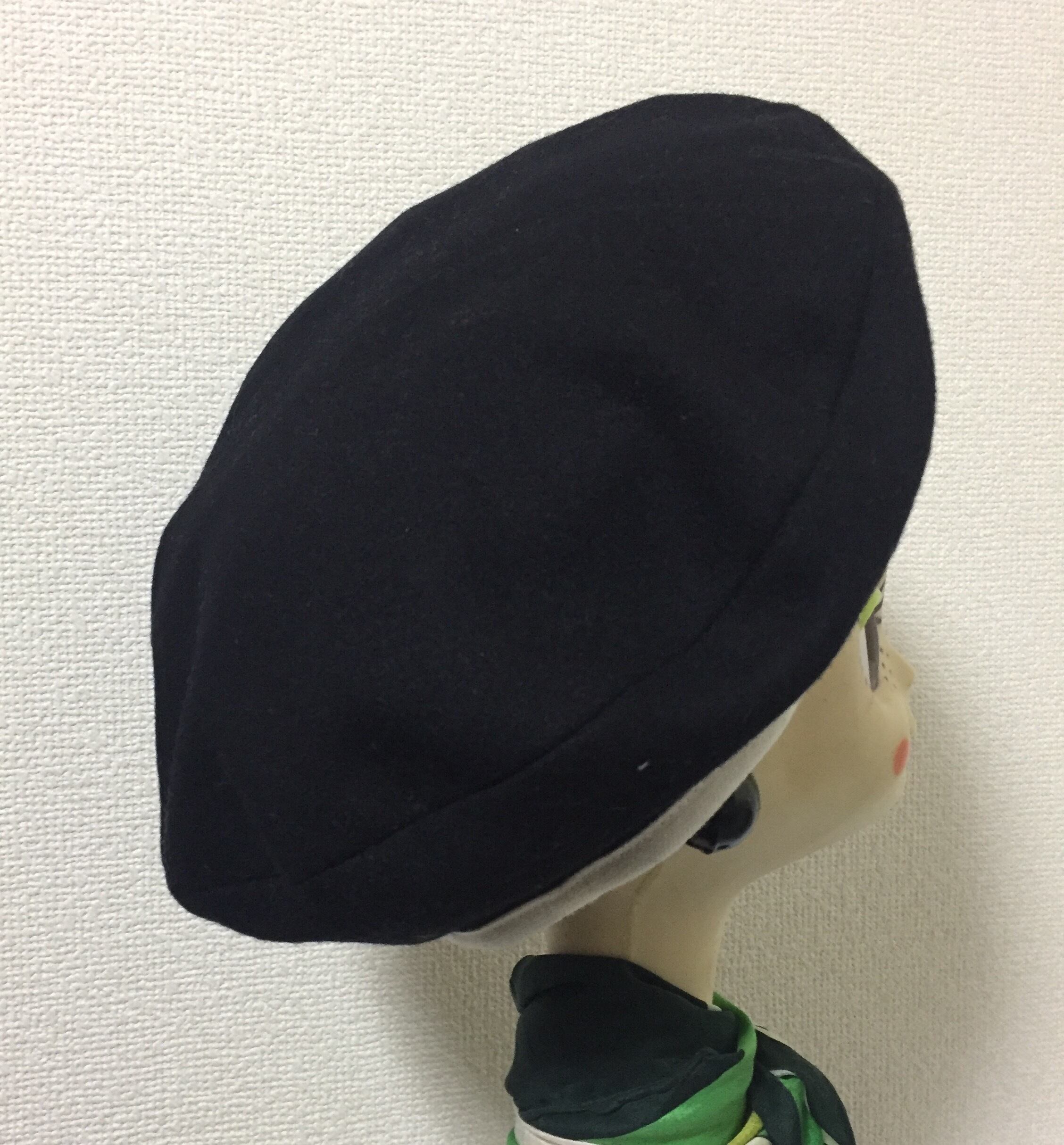 形はシンプルながら厚地ウールの素材感、飾りボタンが、ポイントとなっています。