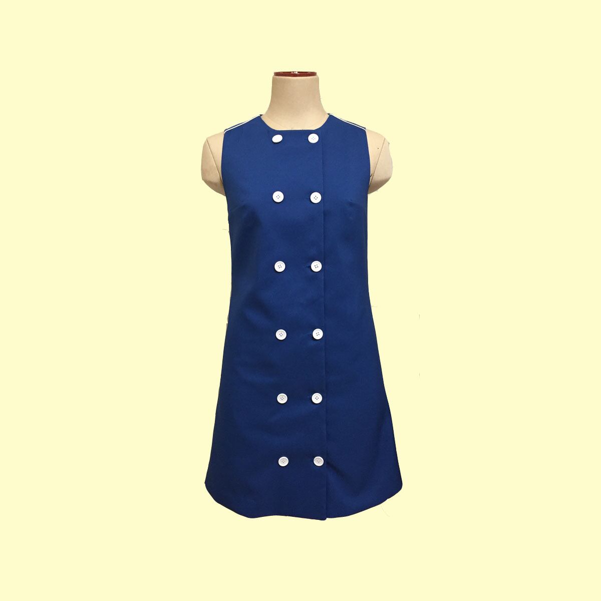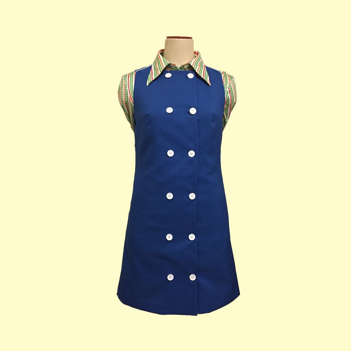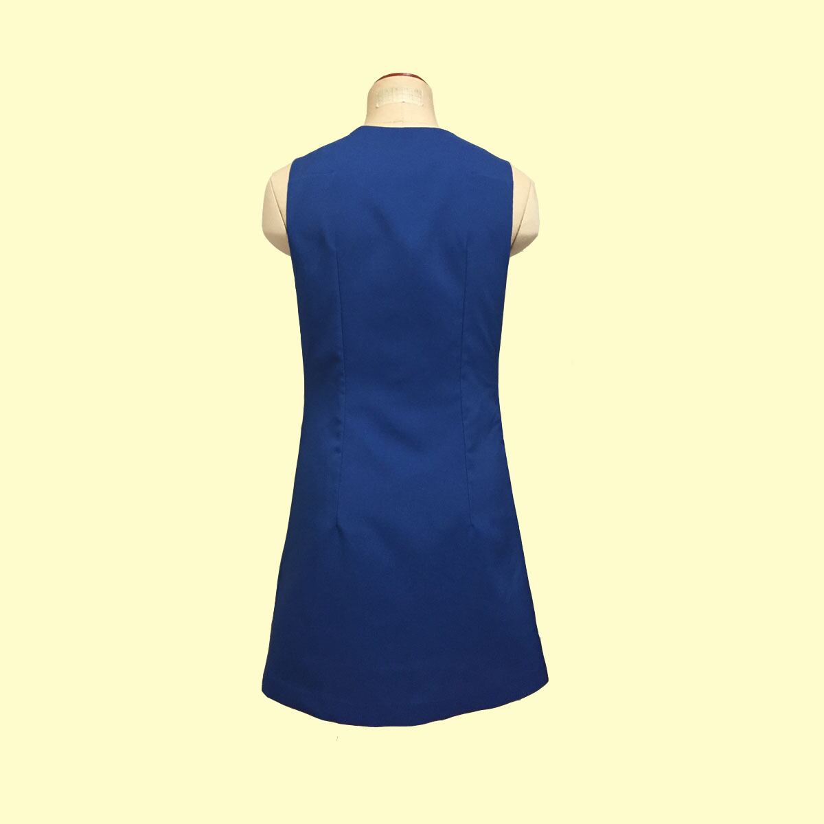 W開きノースリーブ、ノーカラー、70sチックなデザインのソリッドワンピースです。
