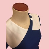 後ろ開きノースリーブ、60sチックなワンショルダー風デザインの袖付きワンピースです。