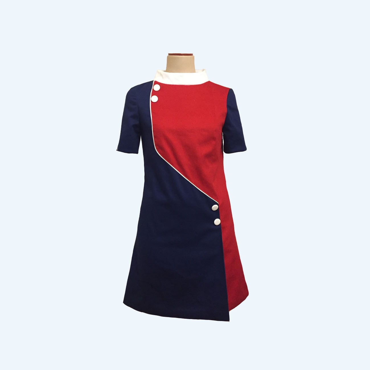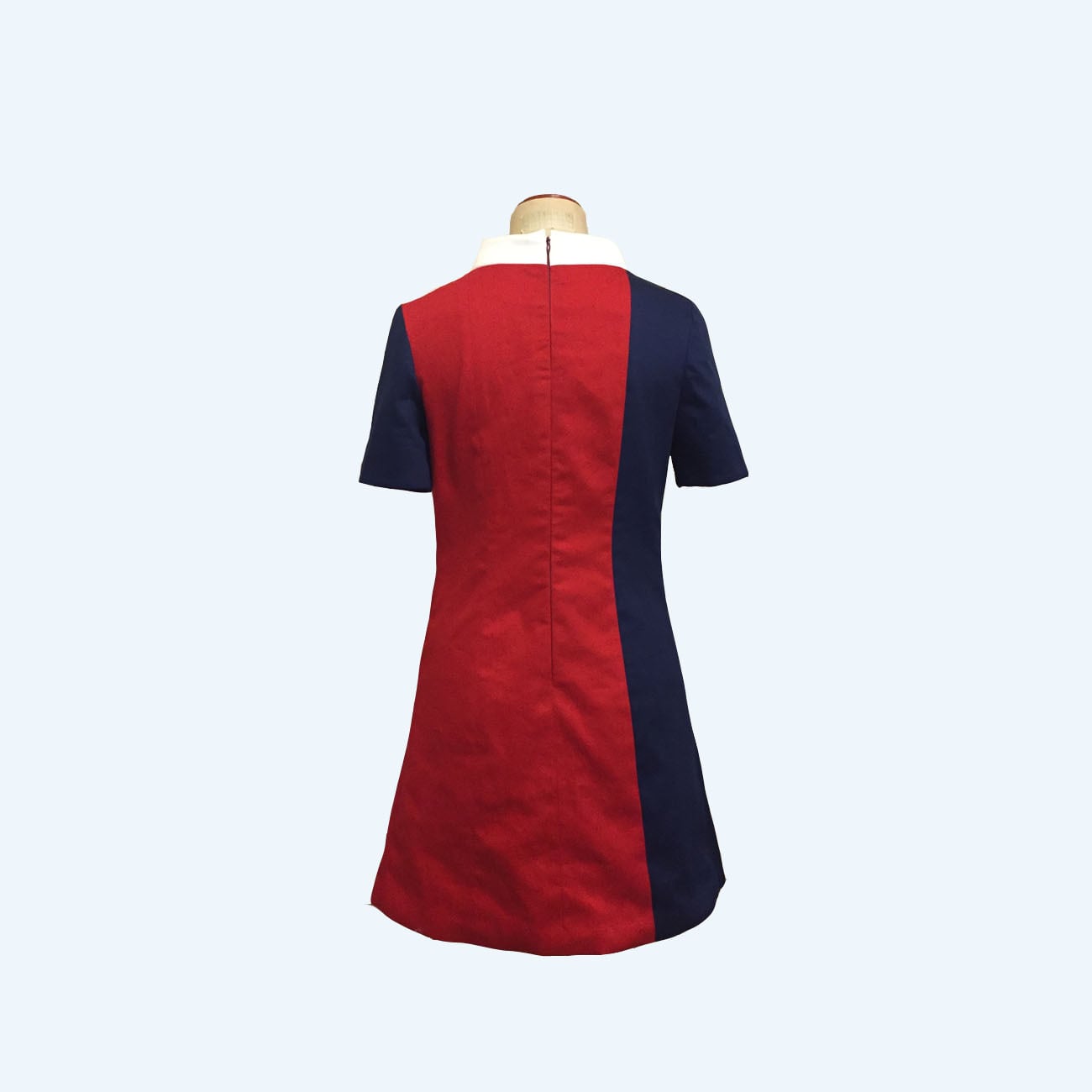 後ろ開きハーフスリーブ、60sチックなアシンメトリーデザインの袖付きワンピースです。