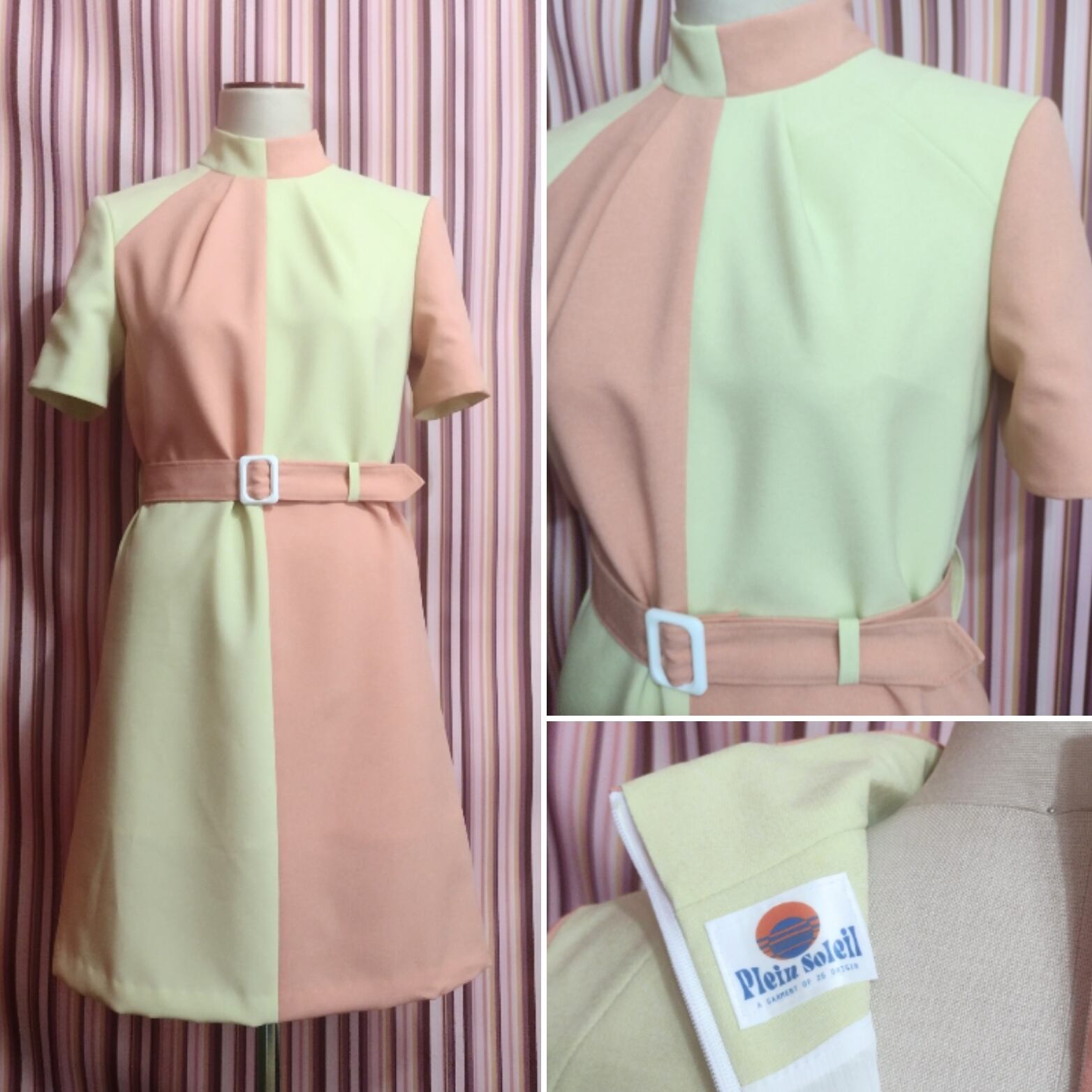 大胆な切り替え、衿周りのタック、ウエストマークのベルトがポイントになっております。