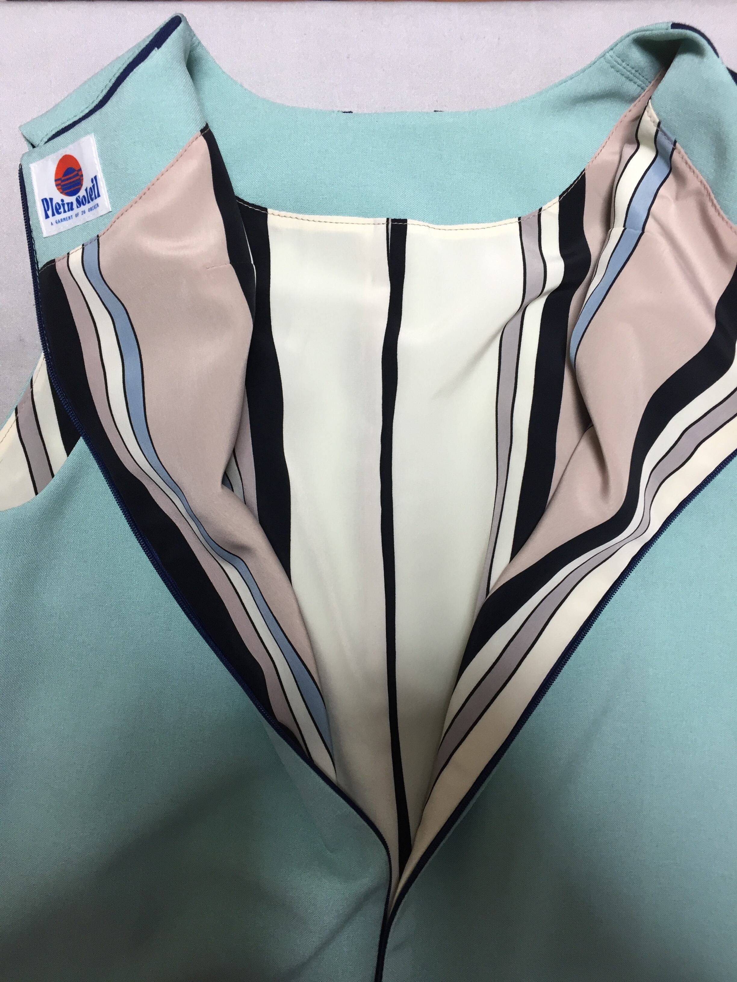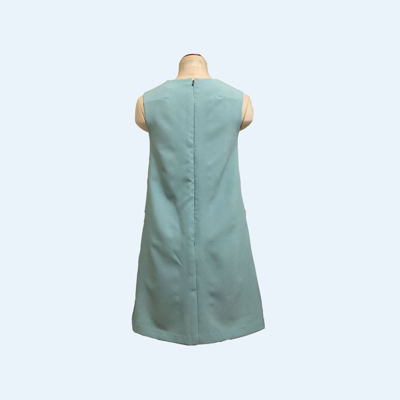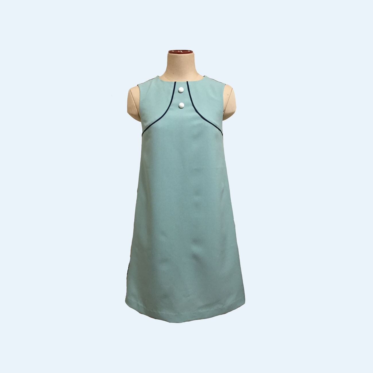 ノーカラーノースリーブが70sチックなデザインのワンピースです。