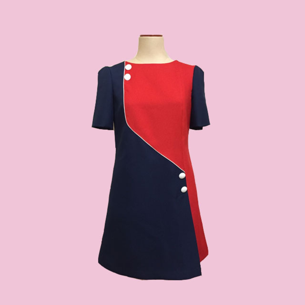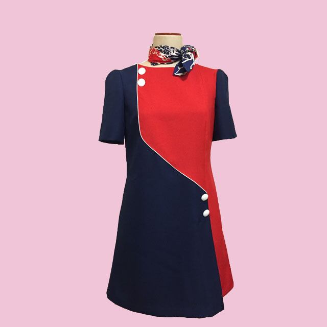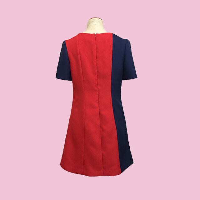後ろ開きハーフスリーブ、70sチックなアシンメトリーデザインの袖付きワンピースjeanneのアレンジバージョンになります。