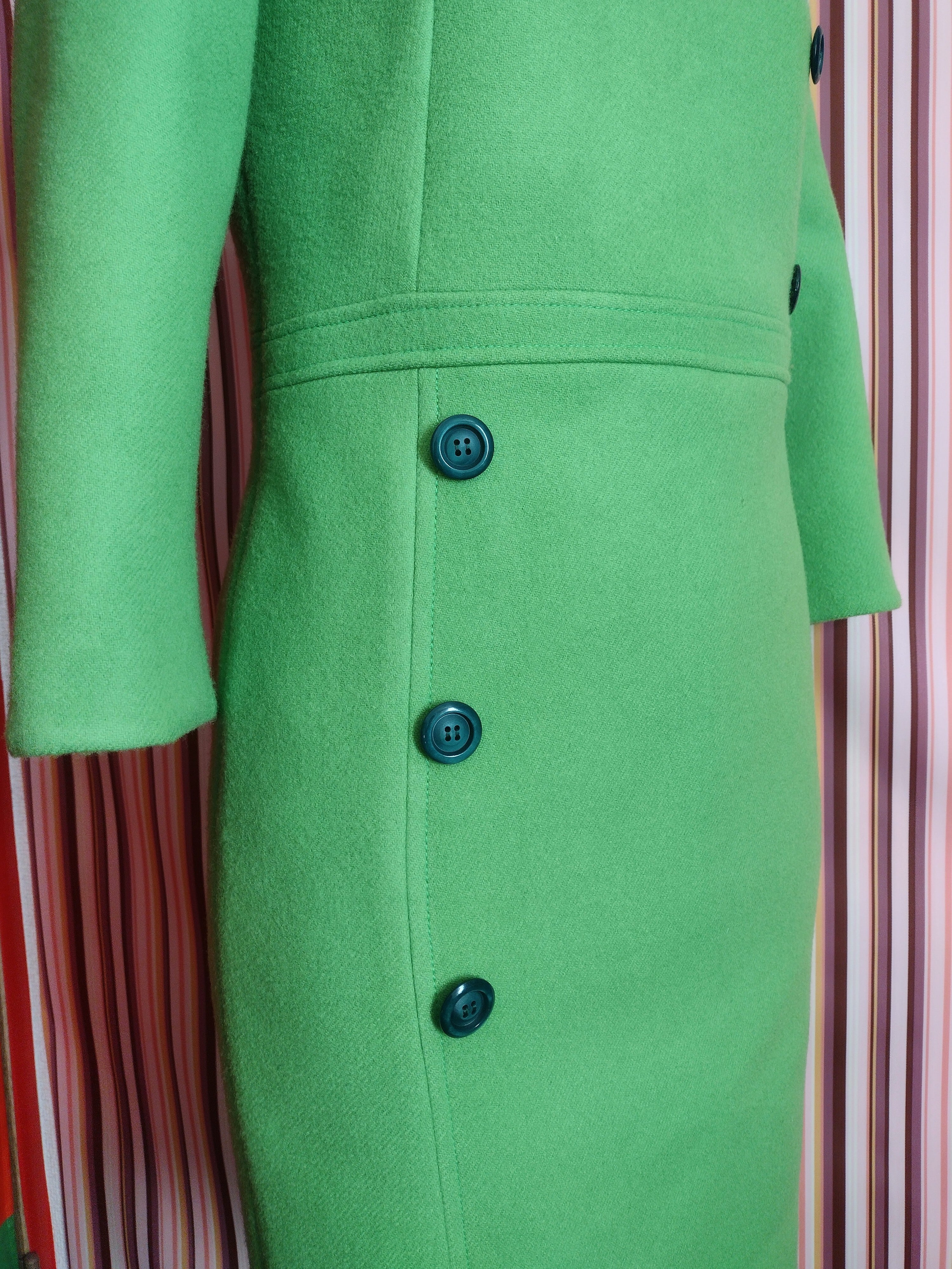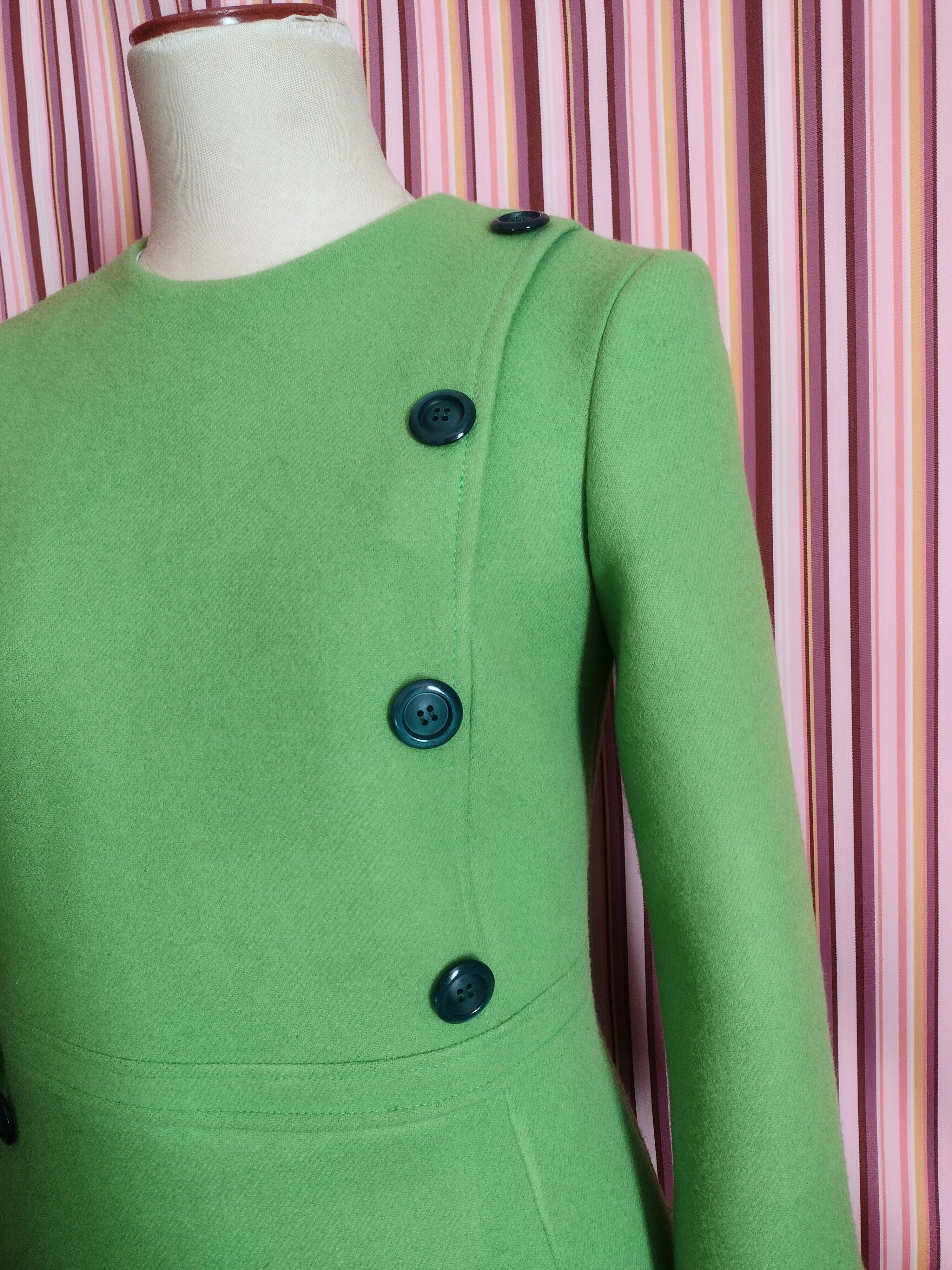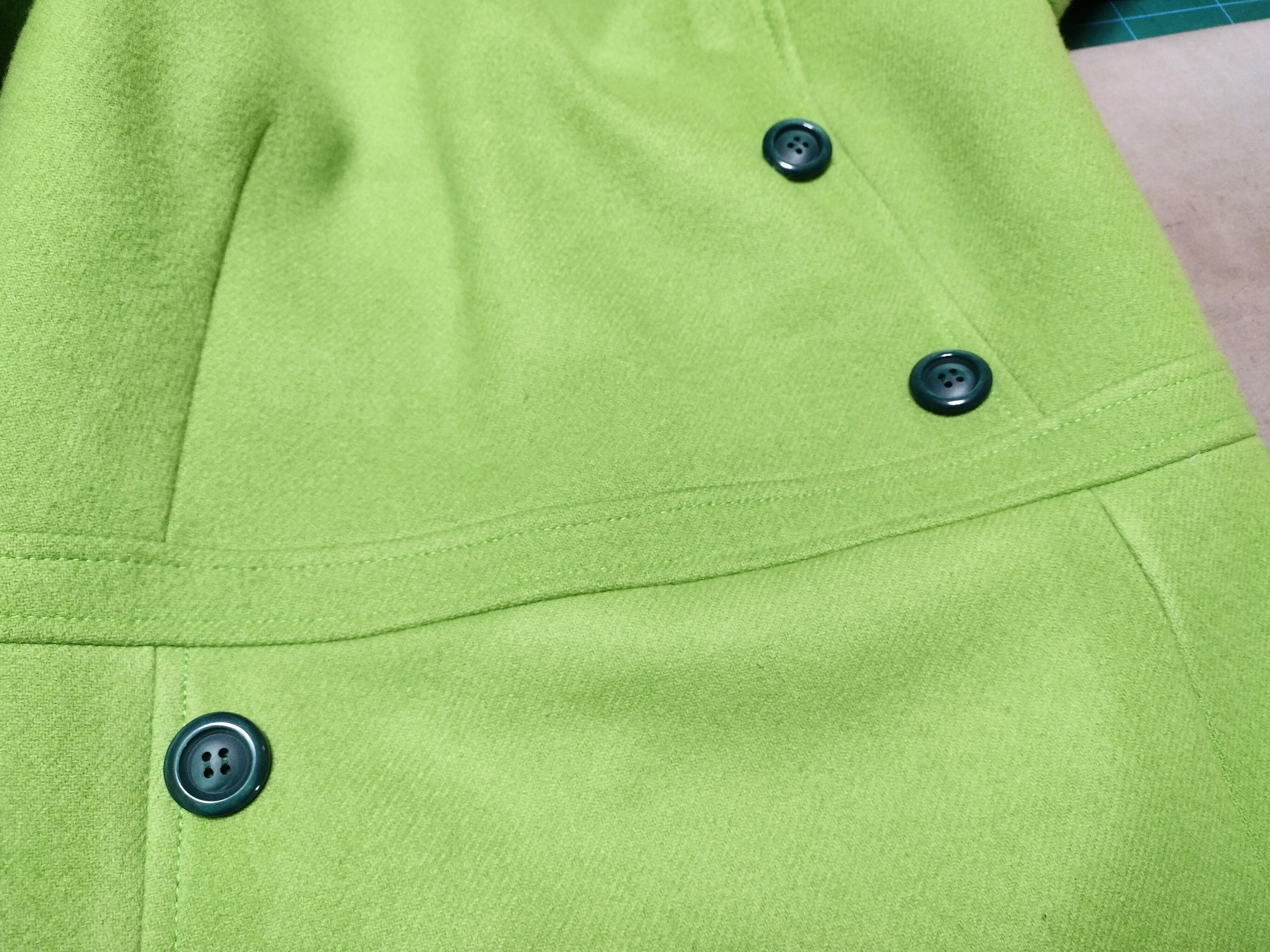 飾りボタンを活かしたアシンメトリー風の切り替えがデザインポイントです