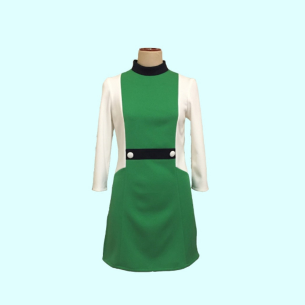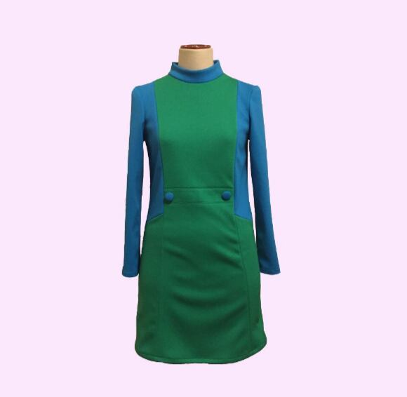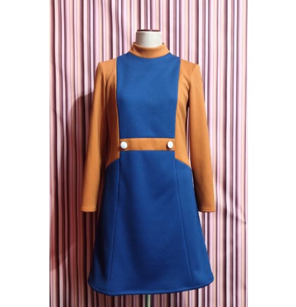 大胆なカラーブロックデザインのハイネックワンピースになります。