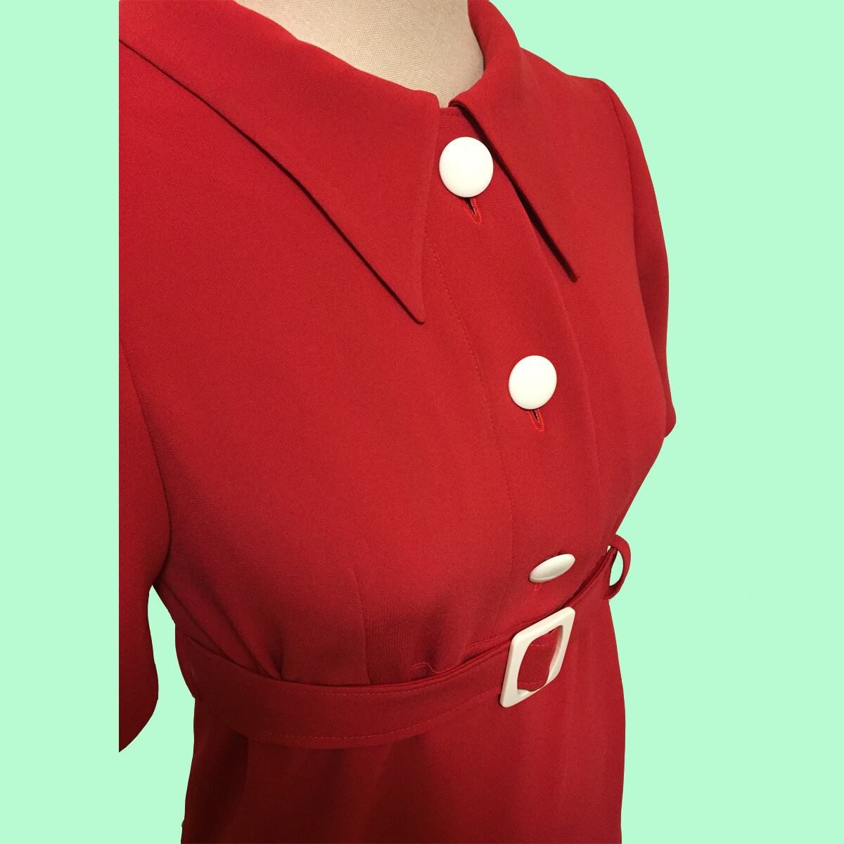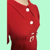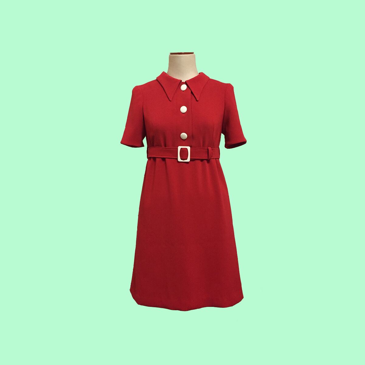 大きめの衿、ボタン開き、ベルトがレトロデザインなワンピースです。