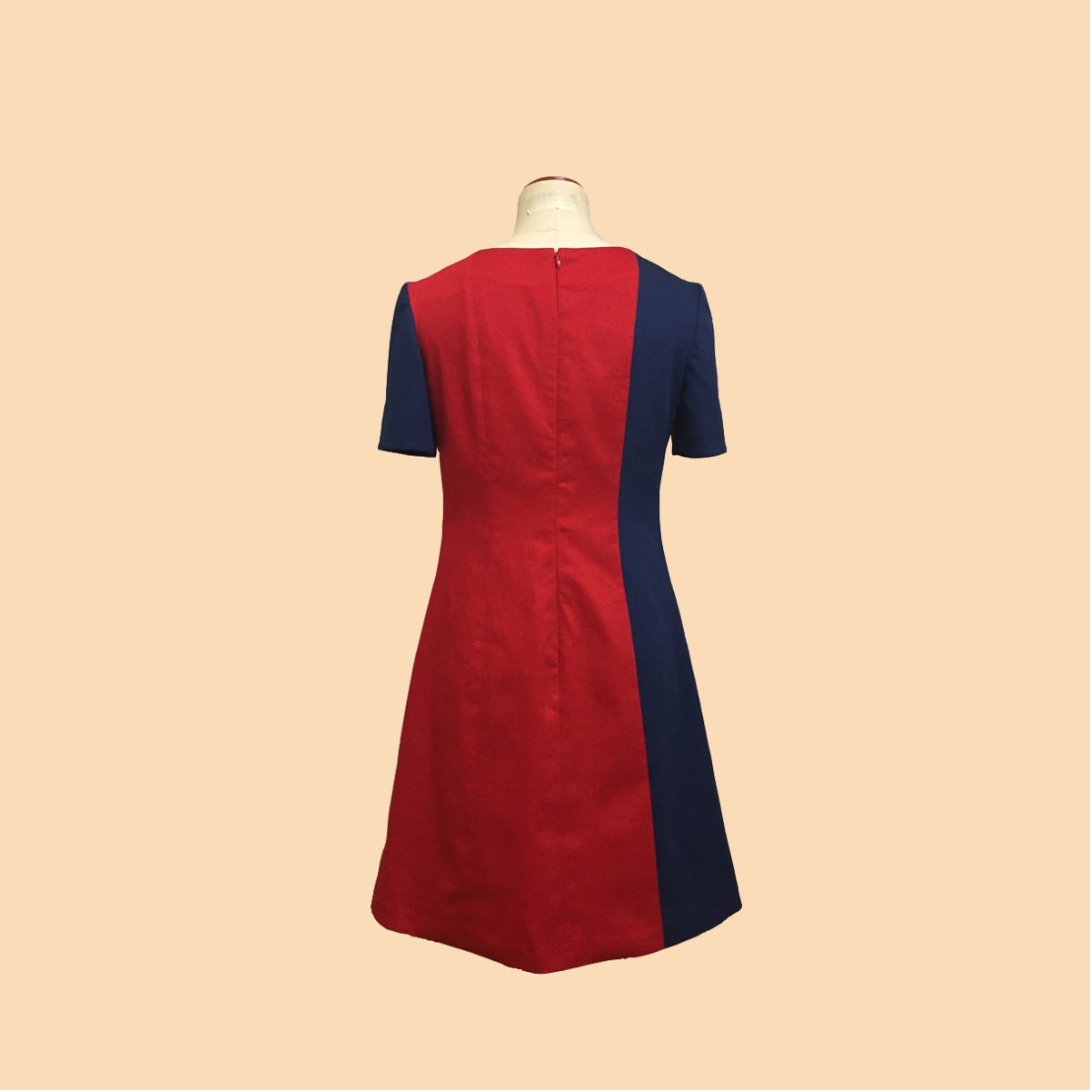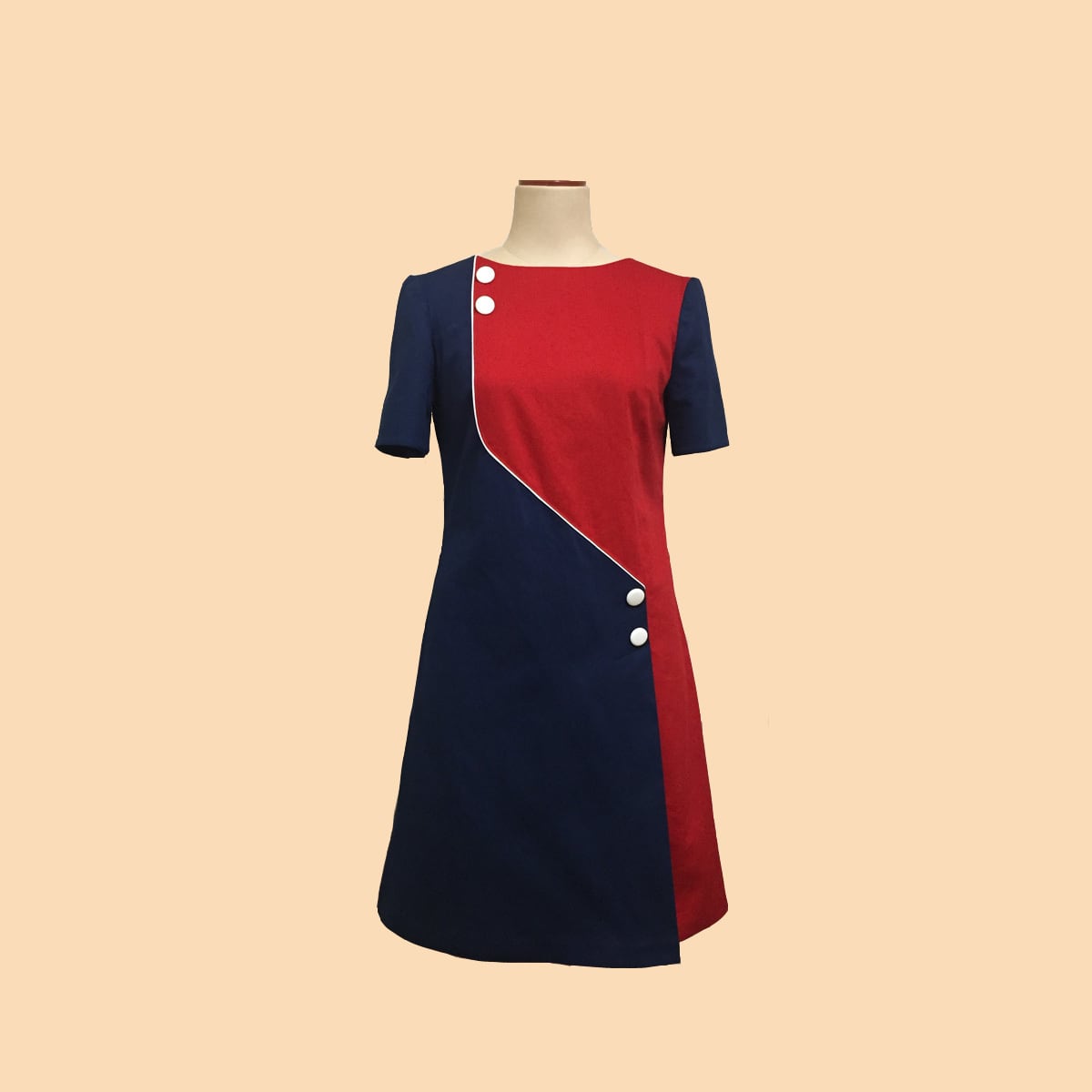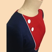 後ろ開きハーフスリーブ、60sチックなアシンメトリーデザインの袖付きワンピースjeanneのアレンジバージョンになります。