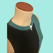 ノーカラーノースリーブ、大胆な配色切り替えが、70sチックなデザインのワンピースvittoriaのアレンジバージョンです。