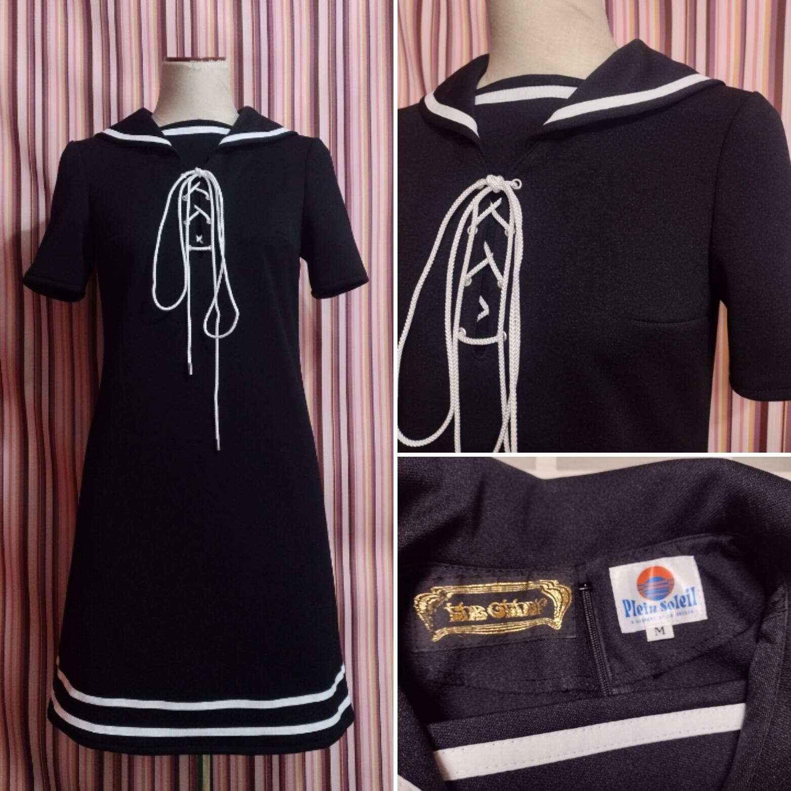 レトロなハーフスリーブのセーラーカラーワンピース。