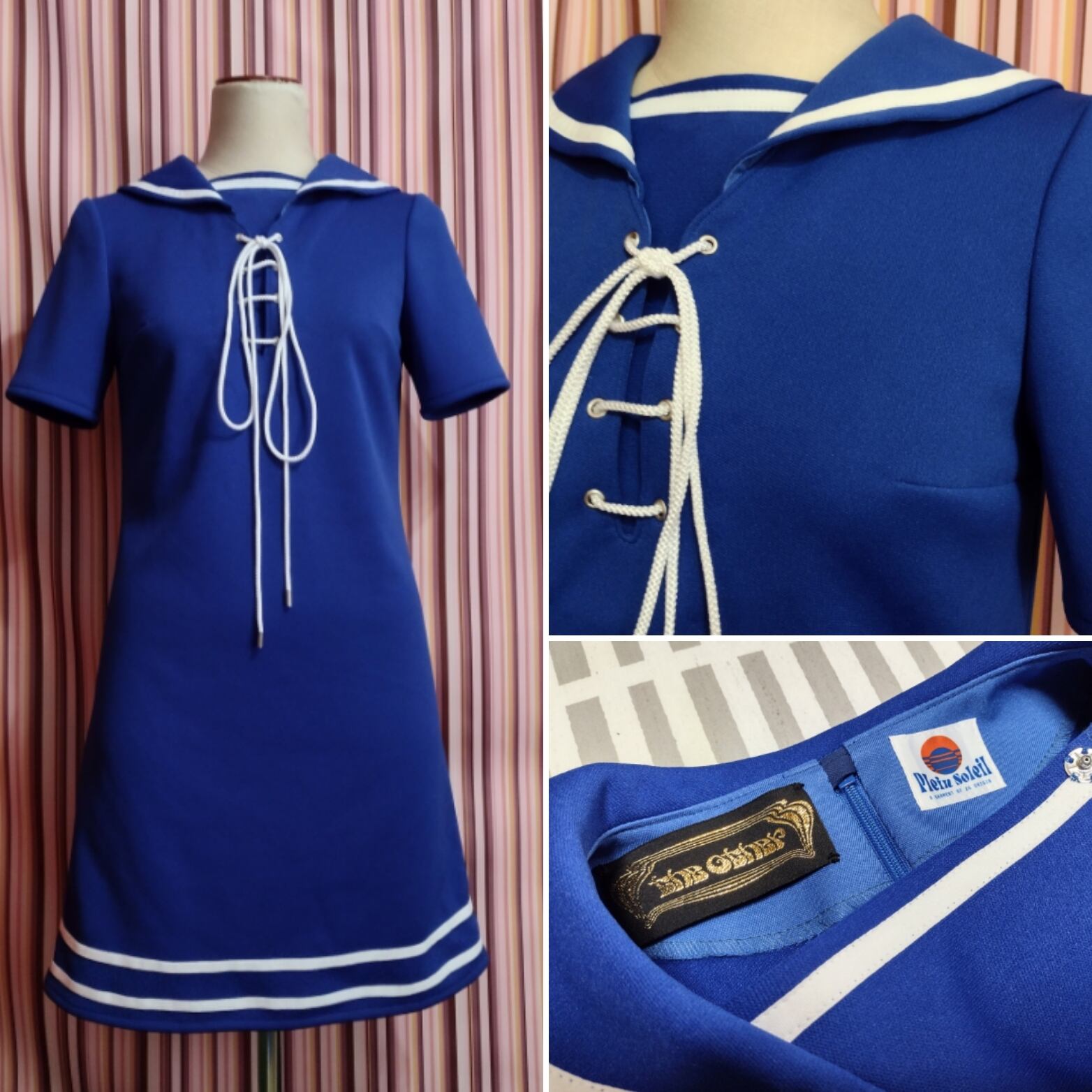 レトロなハーフスリーブのセーラーカラーワンピース。