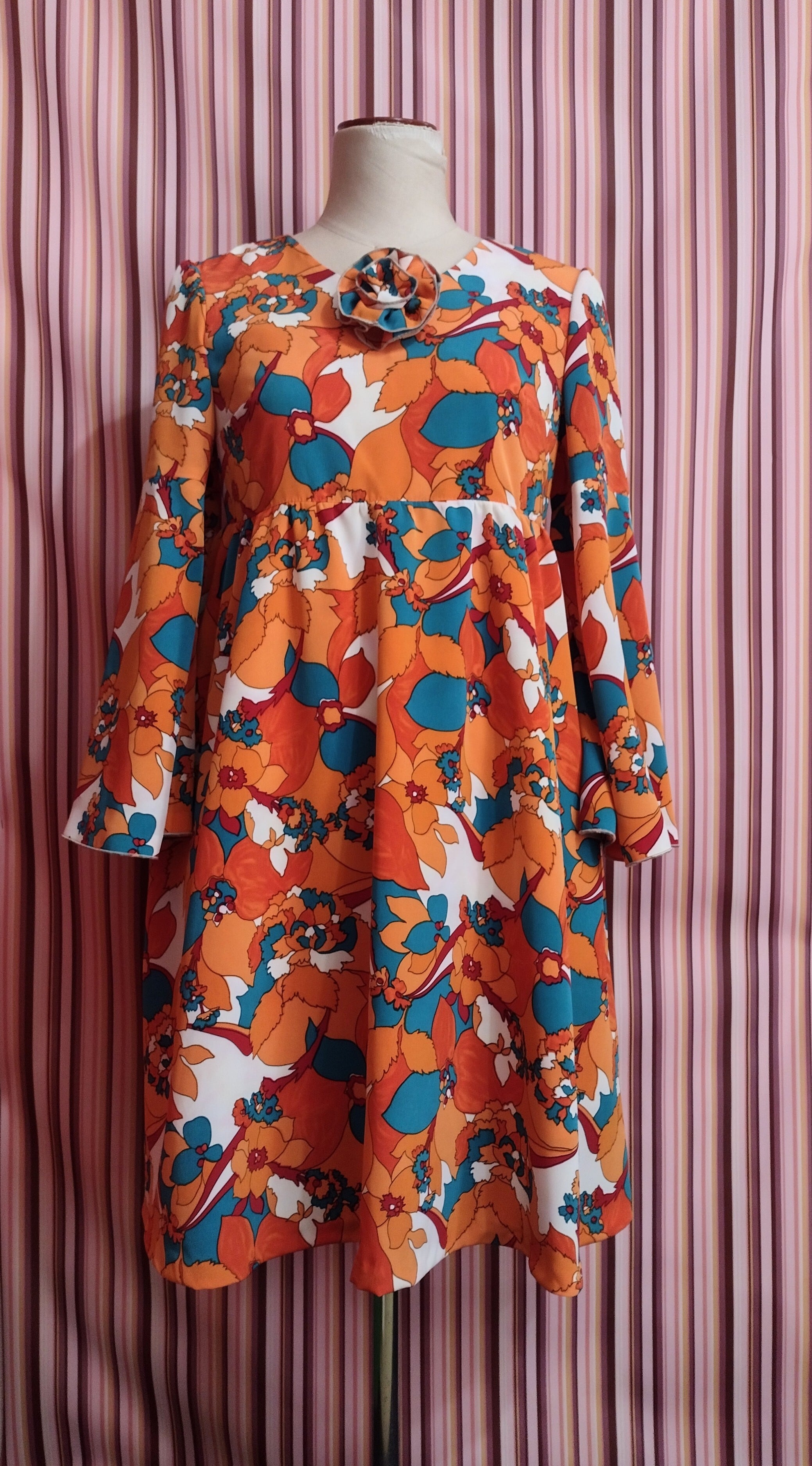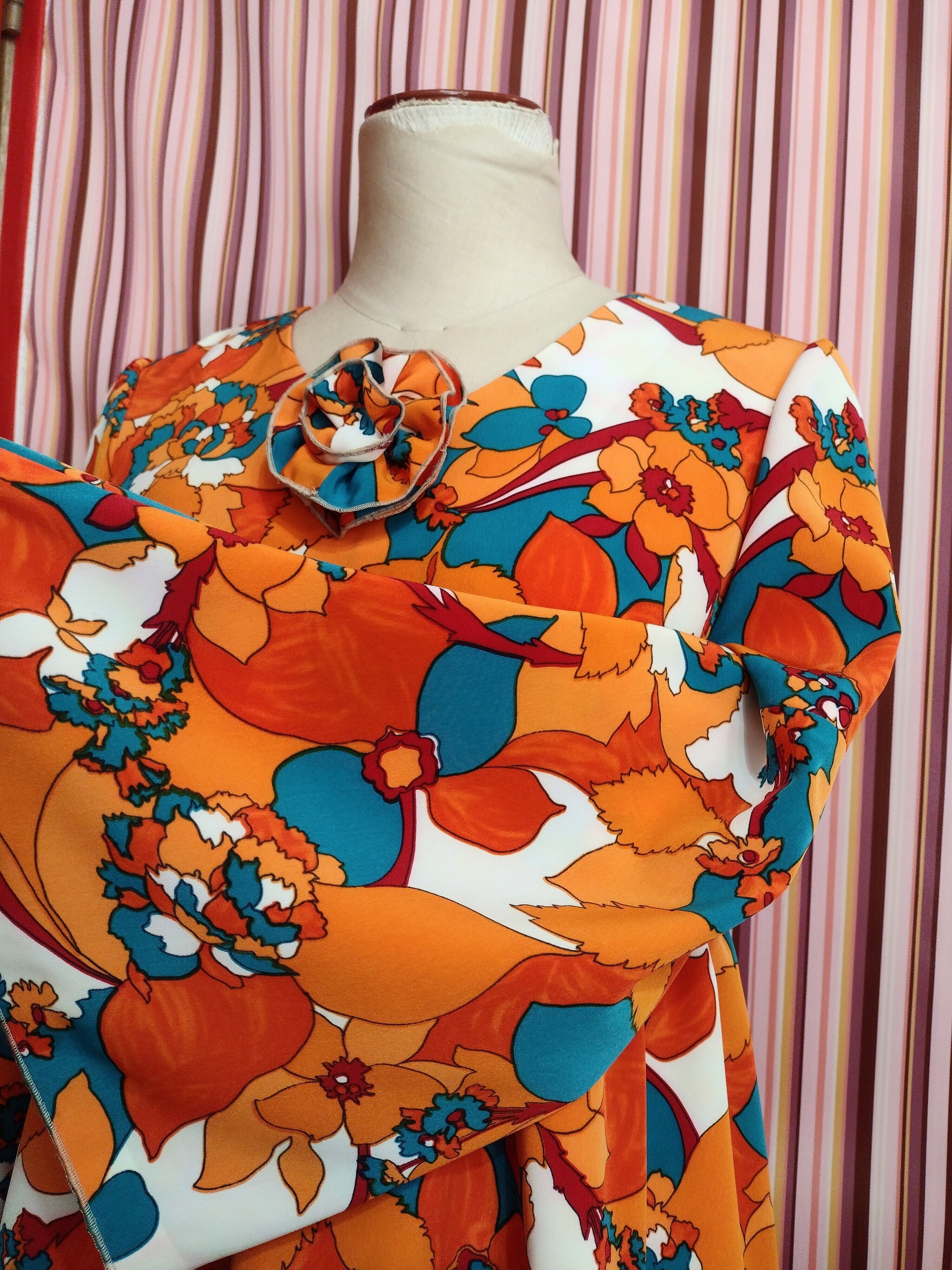胸元のコサージュ(取り外し可)がアクセントとなります