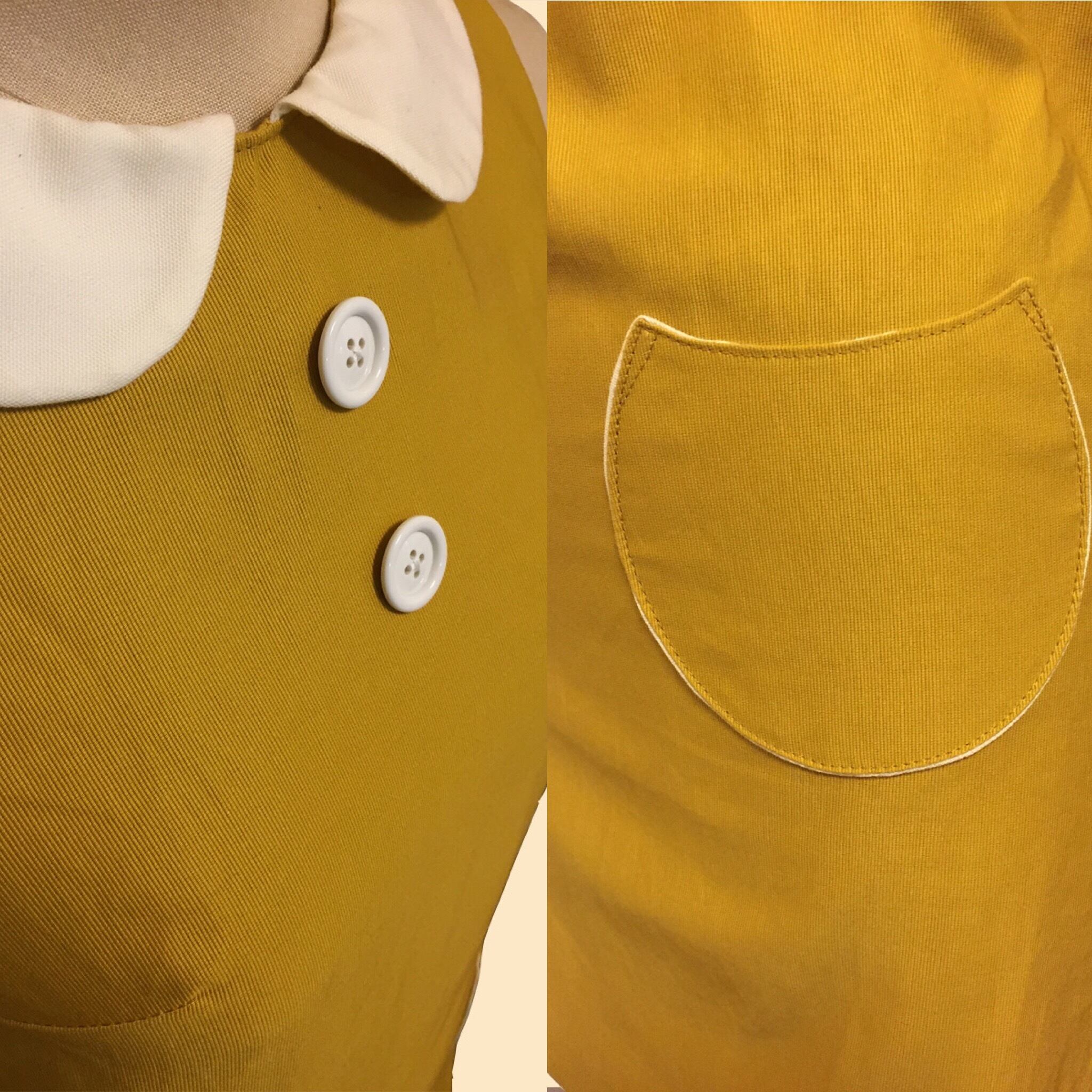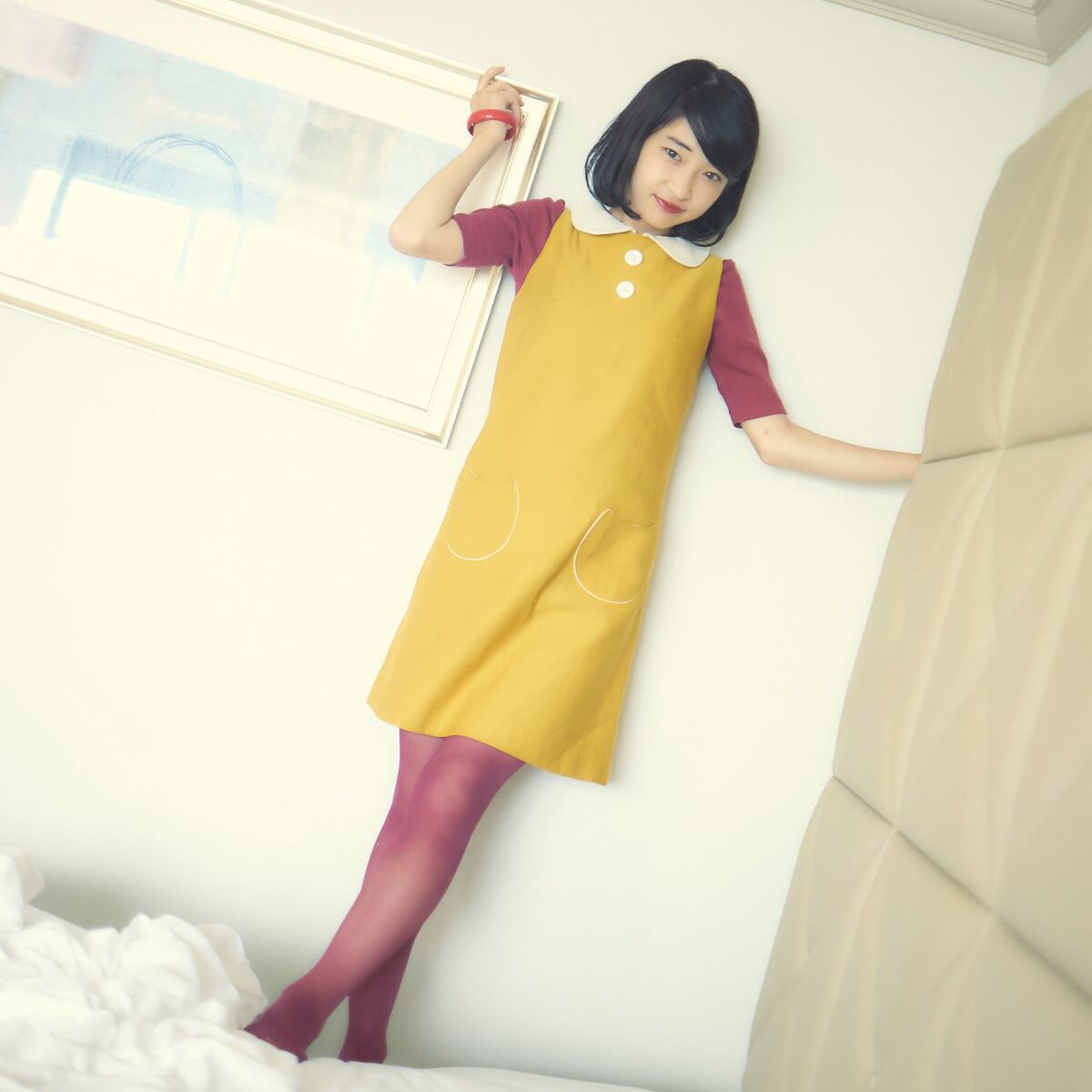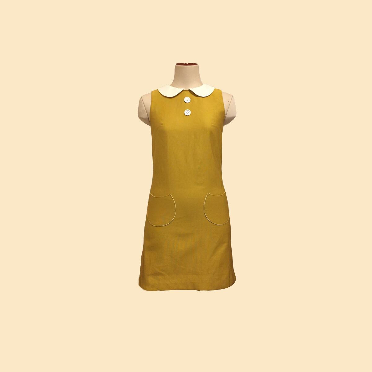 フラットカラーノースリーブが60sチックなデザインのソリッドカラーワンピースです。