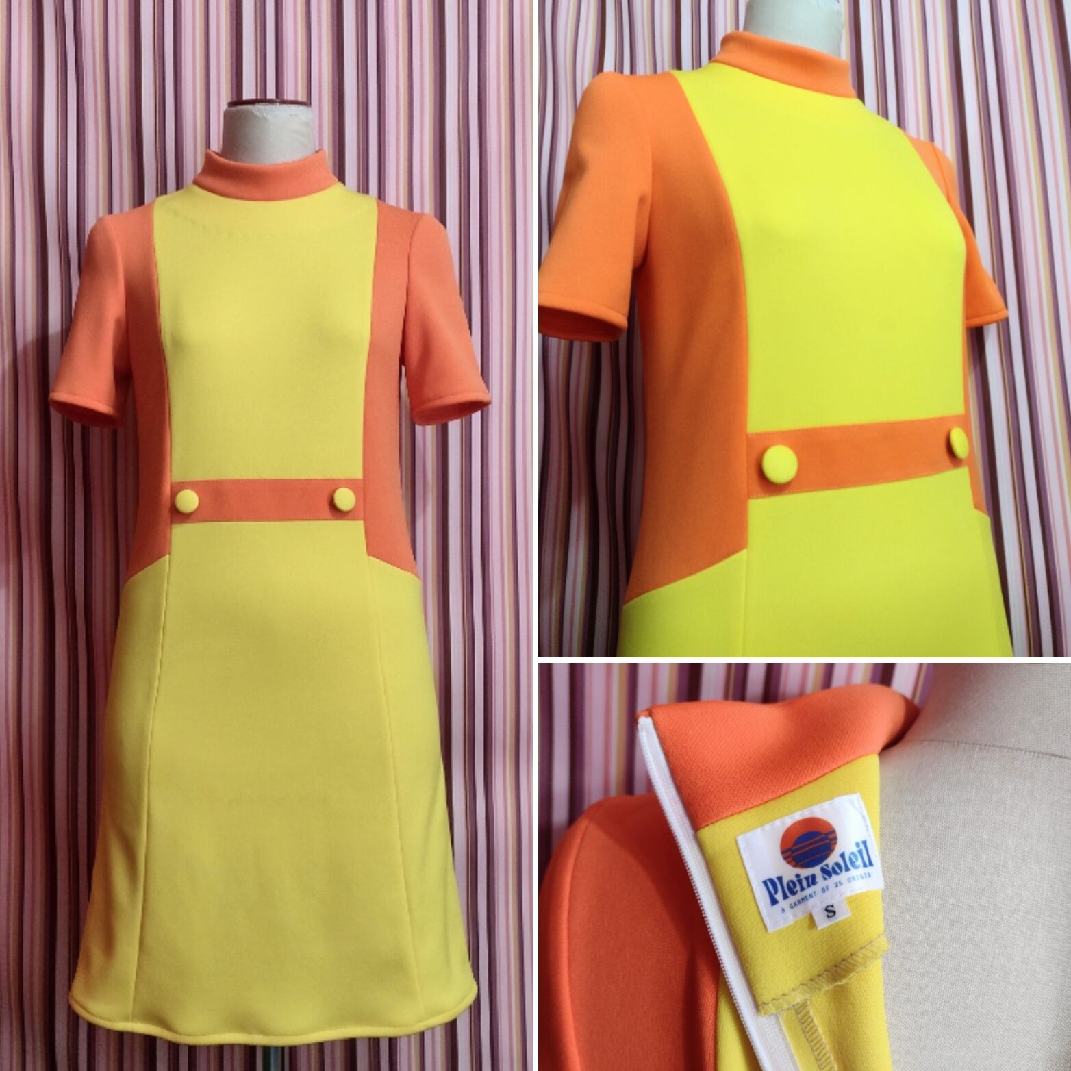 後ろ開きハーフスリーブ、60sテイストの切替デザインワンピース。