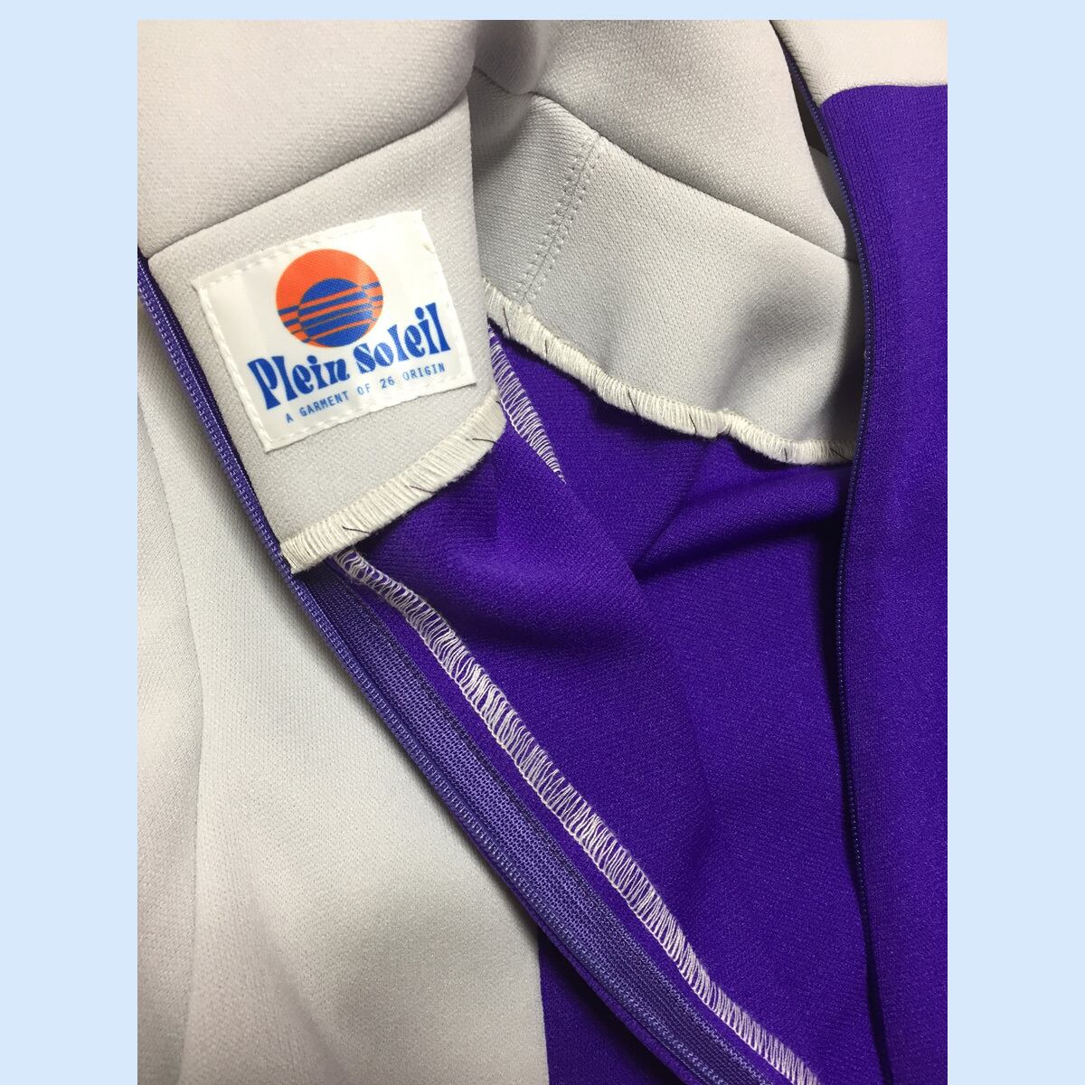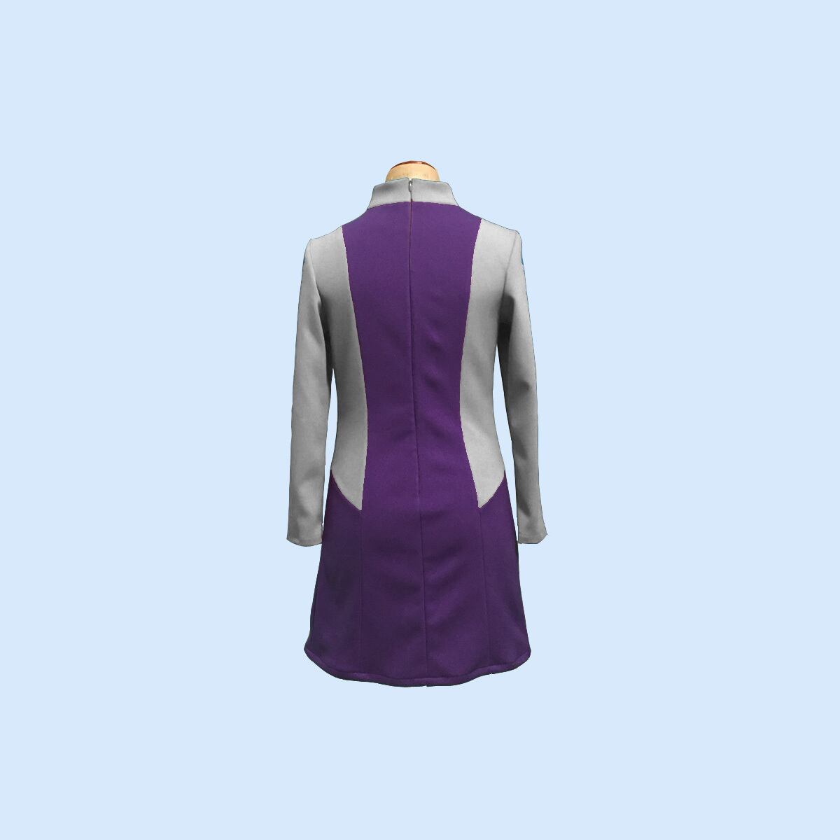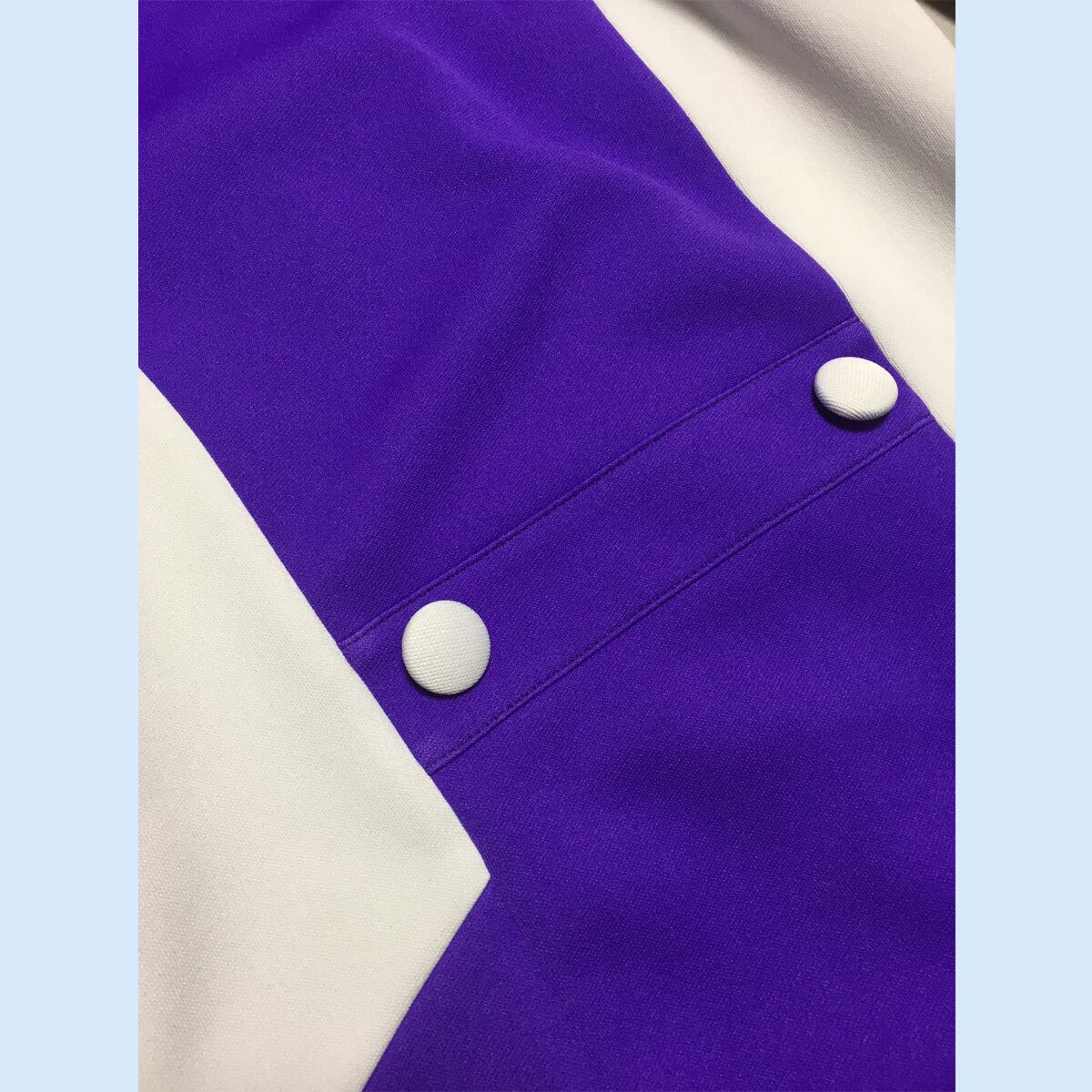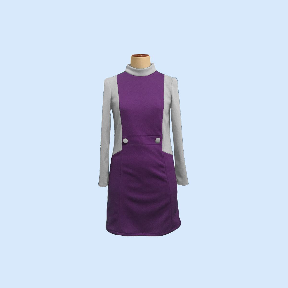後ろ開きロングスリーブ、60sチックな大胆なカラーブロックデザインの袖付きハイネックワンピースになります。